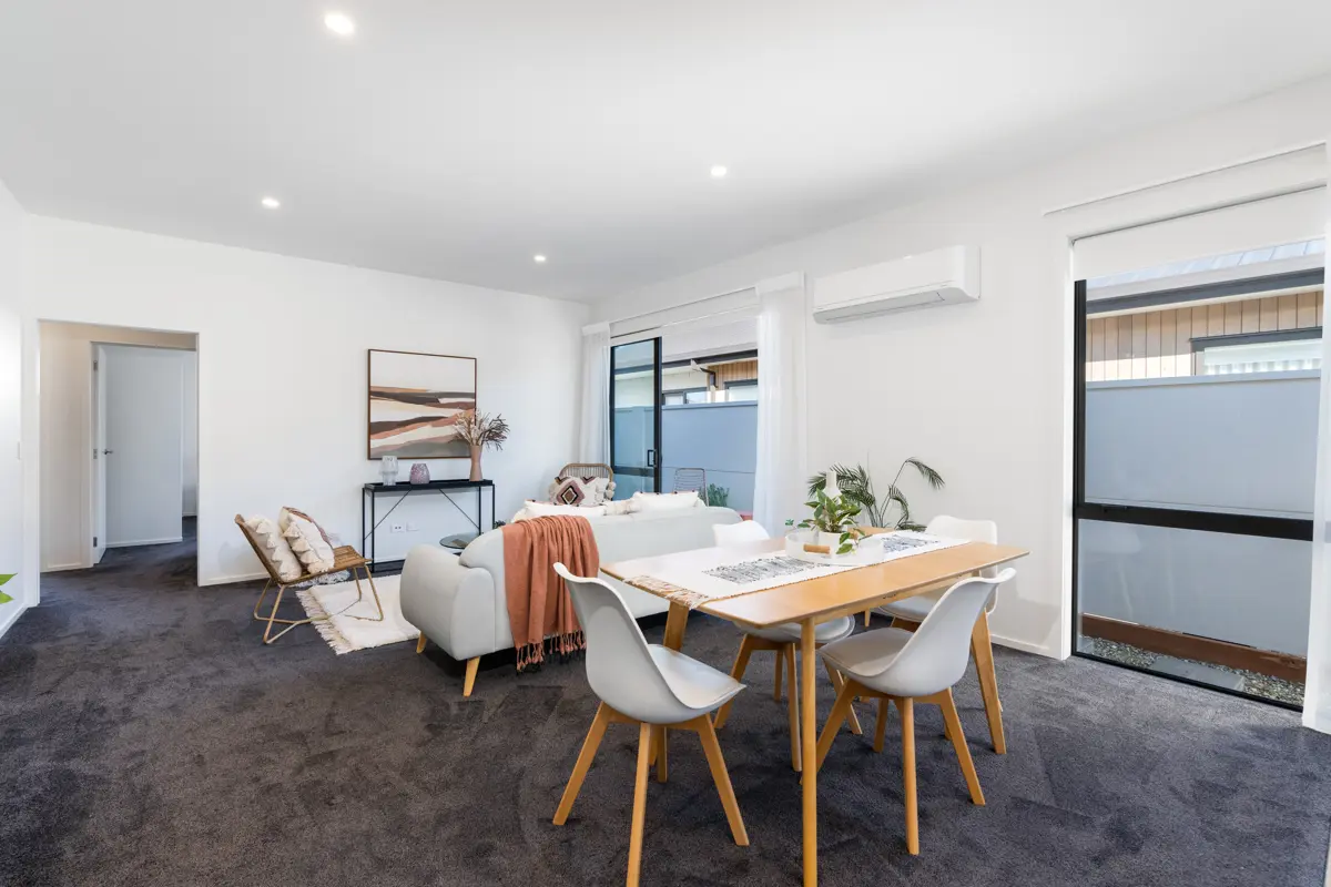 Stunning fixtures, luxurious textures and a pleasing palette blend perfectly to provide a comforting abode for busy professionals, or those looking for a savvy investment property or a town lock and leave. The generous open plan layout provides seamless flow for everyday life or entertaining with a sophisticated and functional kitchen, good dining space and the living area opening to a hardwood deck. The two bedrooms both open out to their own private decks, with the master offering a deluxe fully tiled ensuite with heated floor. The opulence continues to the large main bathroom, again fully tiled with under flooring heating, large walk-in shower and freestanding bath. The home is completed with a large single carpeted garage with additional storage and the laundry space. Located steps away from Mosgiel's main shopping precinct and just 15 minutes to Dunedin's CDB, this fabulous opportunity to enjoy an elegant, private, low-maintenance lifestyle can now be yours.