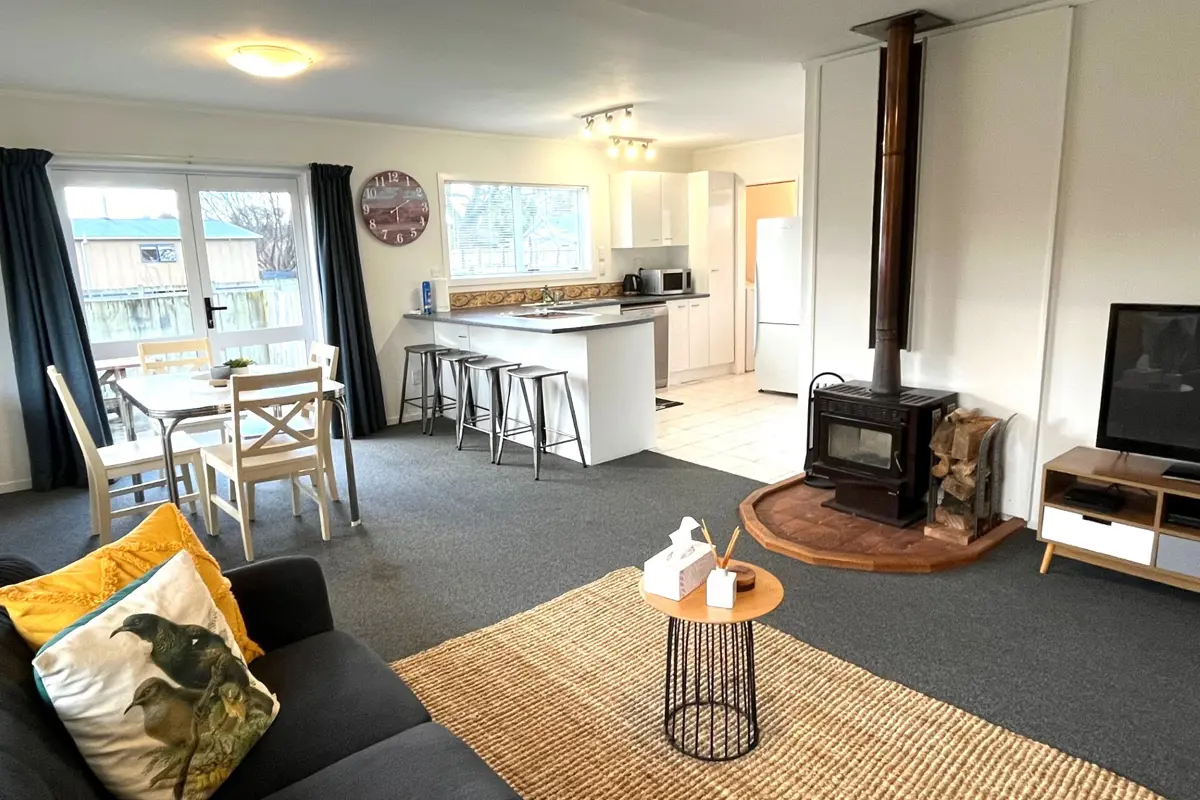 It’s refreshing to find a two-bedroom property that has plenty of room to move. This house sits on a 761m2 fully fenced section with ample room for the kids and pets to let off all that reserved energy. Both bedrooms are doubles and flow onto the open plan living area and kitchen. The bathroom has spacious built-in storage with the separate toilet and large linen cupboard right next door. The separate laundry is just off the kitchen. This house is kept super warm in winter by the wood burner and double glazing throughout. BBQ’s are a must in the summer season and what better place to entertain than in the private courtyard space accessed through doors off the living area. A practical carport that covers the entranceway to the house with a storage shed/drying room at the end of it. This plus many more features. In the time the vendors have owned this property they have kept it super tidy and well maintained. Having been freshly painted inside and out has really made this property pop! If you are looking for a permanent home or holiday home in a nice location, then this one deserves a look. Call Jenna or Polly today to book your viewing!