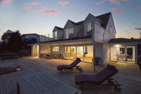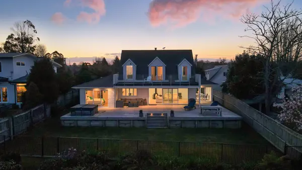 Welcome to a home where refined design meets nature’s quiet grandeur, a residence that does more than offer space; it offers a sense of place. Positioned above the shimmering lake edge, this exceptional property is a retreat in every sense. Set on 1,011sqm of beautifully landscaped and fully fenced grounds, it offers privacy, elevation, and unobstructed views across the lake, the kind that linger in memory long after the sun has set. Thoughtfully designed across two levels, this four-bedroom, three-bathroom home embraces open-plan living, generous proportions, and an effortless indoor-outdoor flow. At its heart is an entertainer’s dream, a large, open kitchen complete with a fully equipped butler’s kitchen, ideal for effortless hosting. This culinary space flows seamlessly onto the expansive entertainer’s deck, where the spa pool invites you, perfectly poised to take in sweeping lake vistas while steam curls into the sunset sky. Inside, warmth and character are woven through every detail. Bespoke timber features, from arched hallway accents to wood-accented ceilings, bring a lodge-like intimacy, while large windows and sliding doors ensure the home remains light-filled and connected to the landscape. Two expansive living areas offer flexibility for family life or entertaining, while a wood burner, double glazing, and ceiling insulation provides comfort through all seasons. The layout is functional yet refined, with each space designed to support both quiet moments and shared experiences. Upstairs, the primary bedrooms each open to private balconies, where misty mornings roll in over the water and stillness becomes a part of your daily rhythm. A dedicated study (or optional fifth bedroom) allows space to work, create, or simply retreat. Practicality is well considered too, with internal-access garaging, generous storage throughout, and modern comforts integrated seamlessly into the design. This is not just a property. It is more than a home. It’s a statement. A destination. A life reimagined, at the water’s edge.