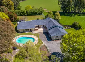 An idyllic union of country seclusion and stately grandeur come together over two luxurious levels of relaxed living and refined entertaining atop a prime parcel in one of the Wairarapa's most select and sought-after lifestyle pockets. Impressively arrayed for social gatherings featuring a chef-...