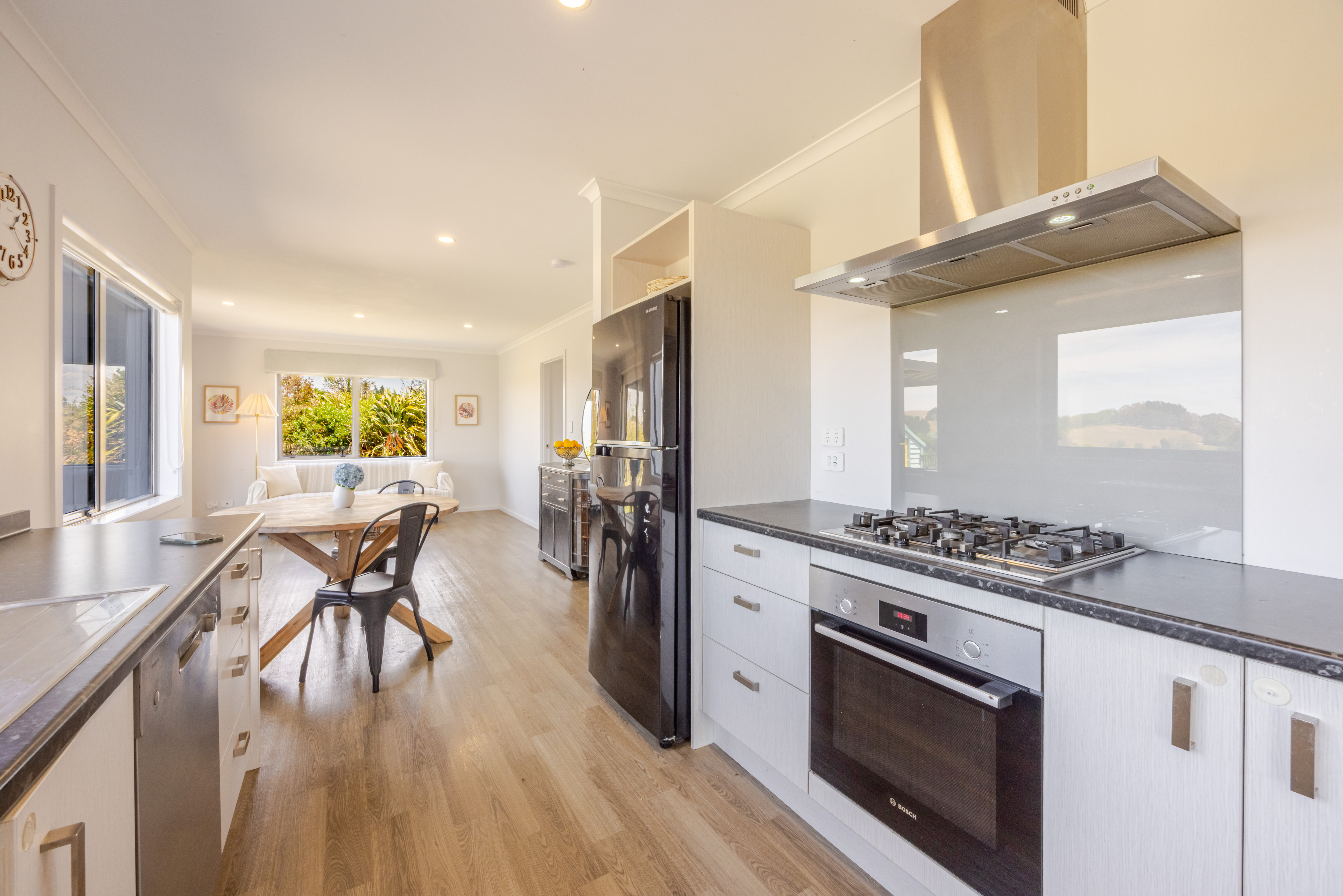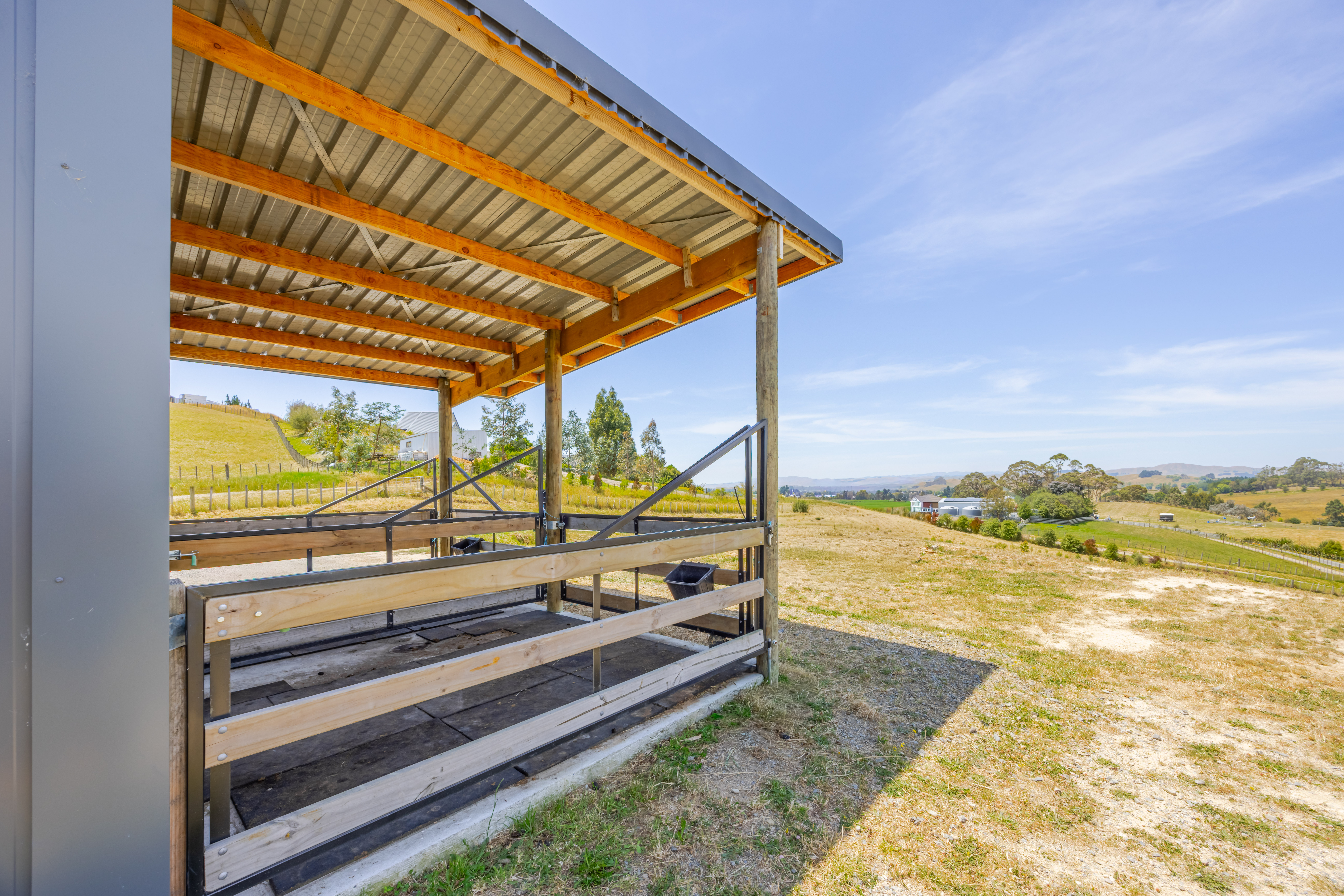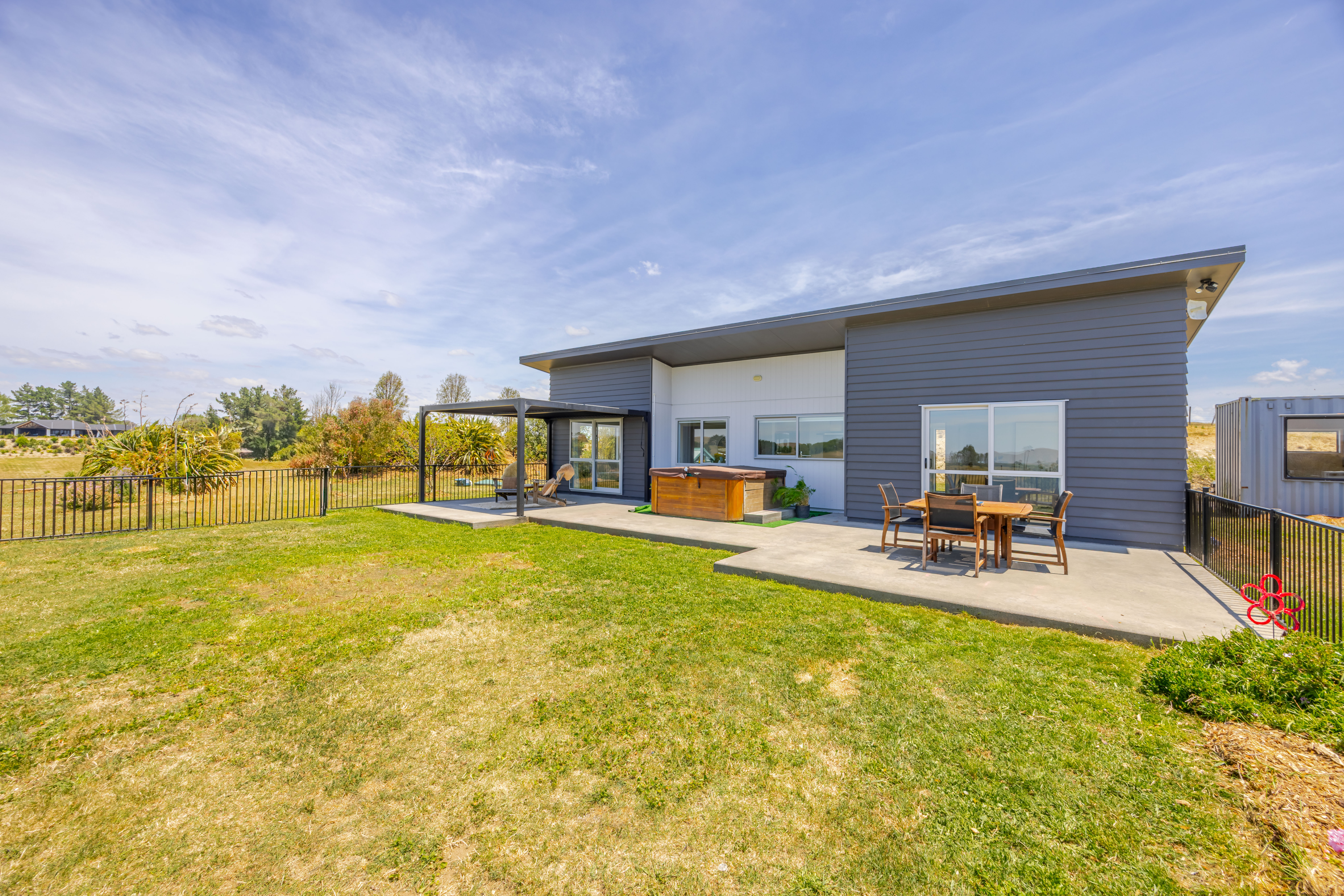 If you've ever dreamed of swapping the fast lane for life on a country lane, this is your sign. Exceptionally well set up, this lifestyle property delivers rural living across 2.45 hectares (6.06 acres) of land with a modern home, quality infrastructure and seriously good rural views you'll never tire of. This is modern lifestyle living done well and done right! The 2019-built 100m2 home is cosy yet beautifully maximised, with open-plan kitchen, dining and living stretching along the sun-soaked north-east aspect. Two sets of sliders open to a generous concrete patio, one end sheltered beneath a Louvretec-style roof, the perfect spot to soak up the scenery while young kids play safely on the well-fenced front lawn. Inside, you'll find three bedrooms with wardrobes, a stylish bathroom, heat pump, gas hot water, double glazed aluminium joinery and insulated walls and ceilings. The gently sloping land is divided into multiple paddocks and complemented by a small home orchard, with plenty of room to grow - animals, gardens, kids and dreams. A two-bay farm implement shed with covered yards is ideal for horses, a 40-foot container converted into extra living space with two additional rooms adds flexibility, and two 25,000-litre water tanks complete the picture. This isn't just a change of address - it's a change of pace. Welcome home to 1 Country Lane.