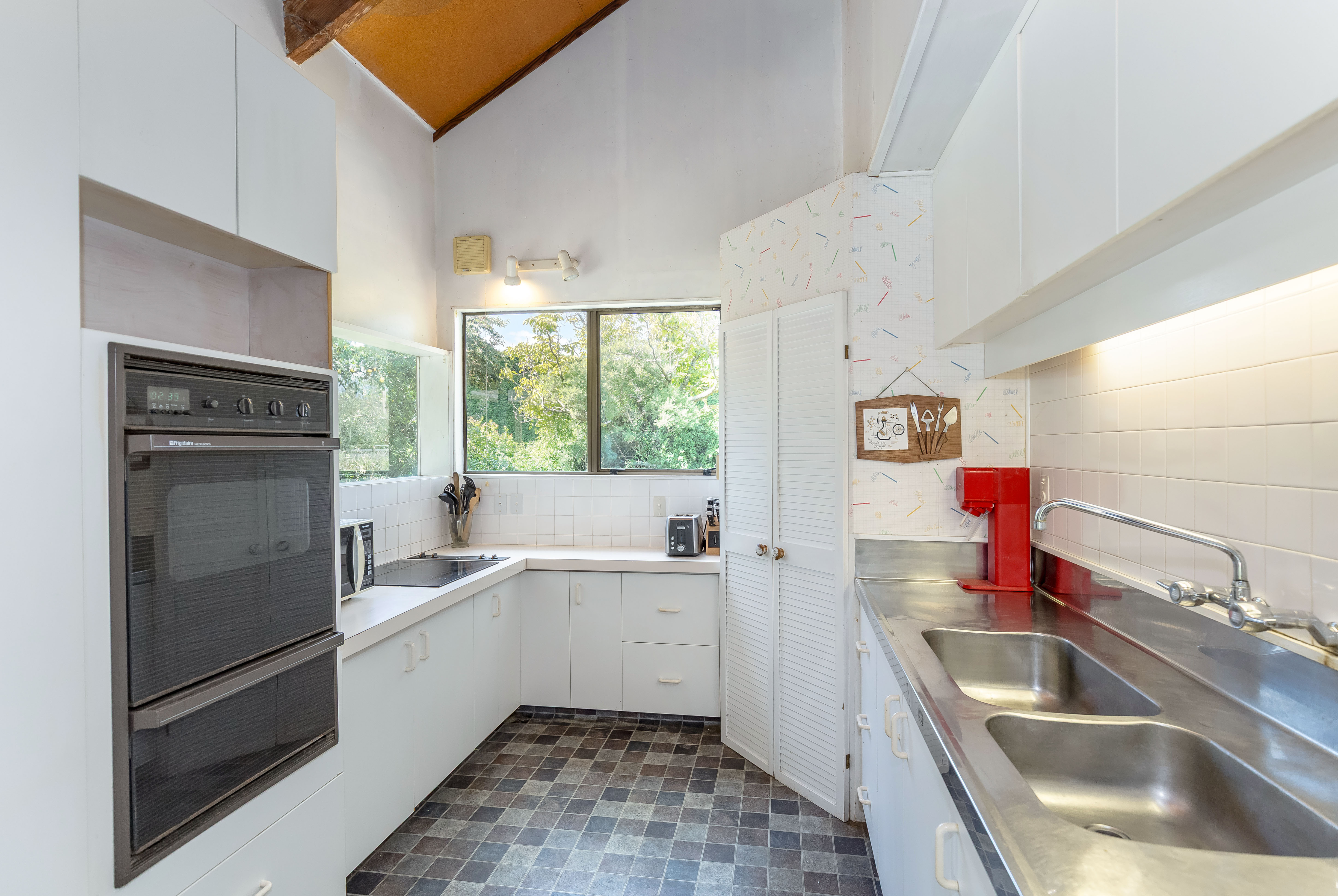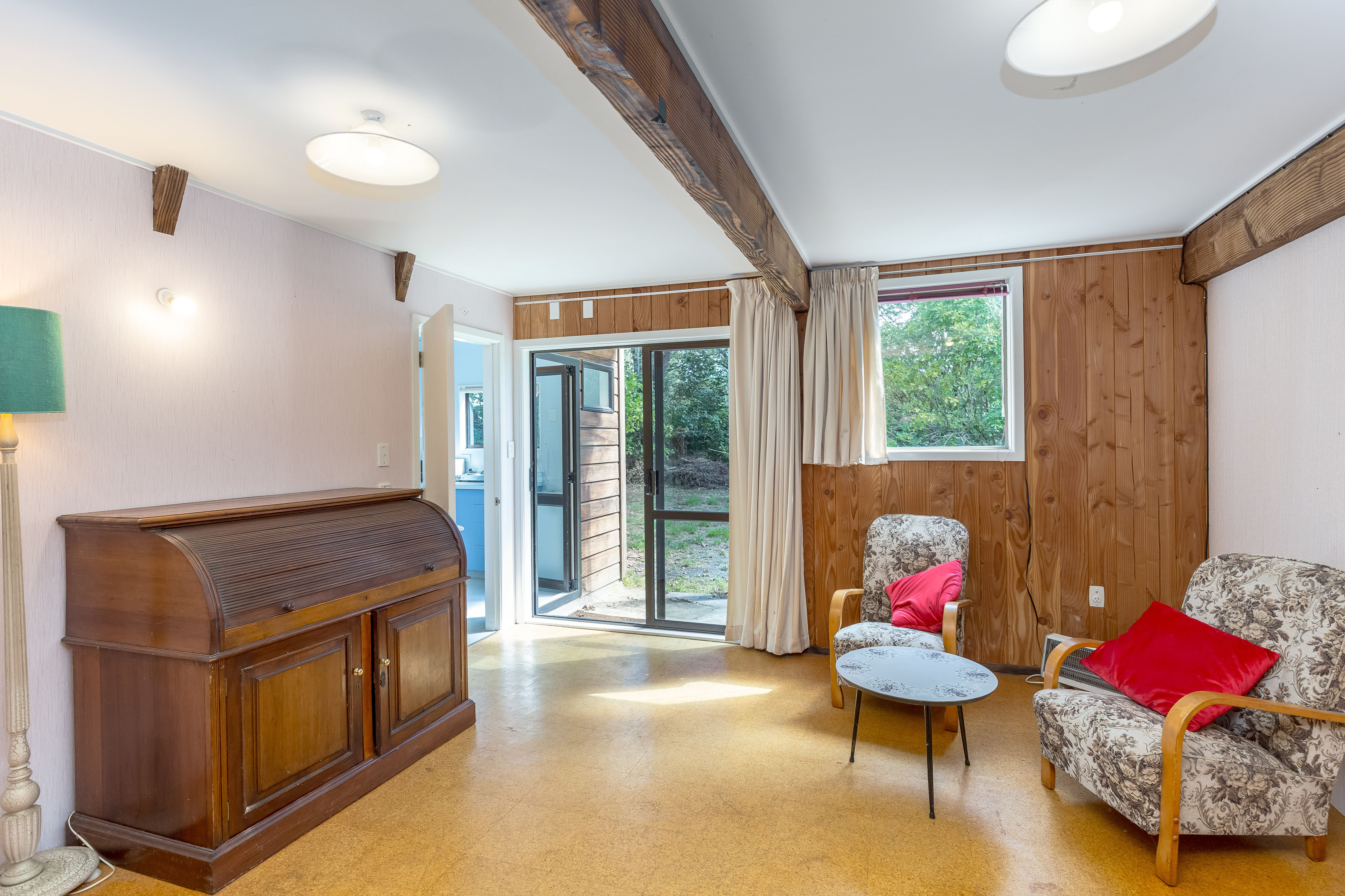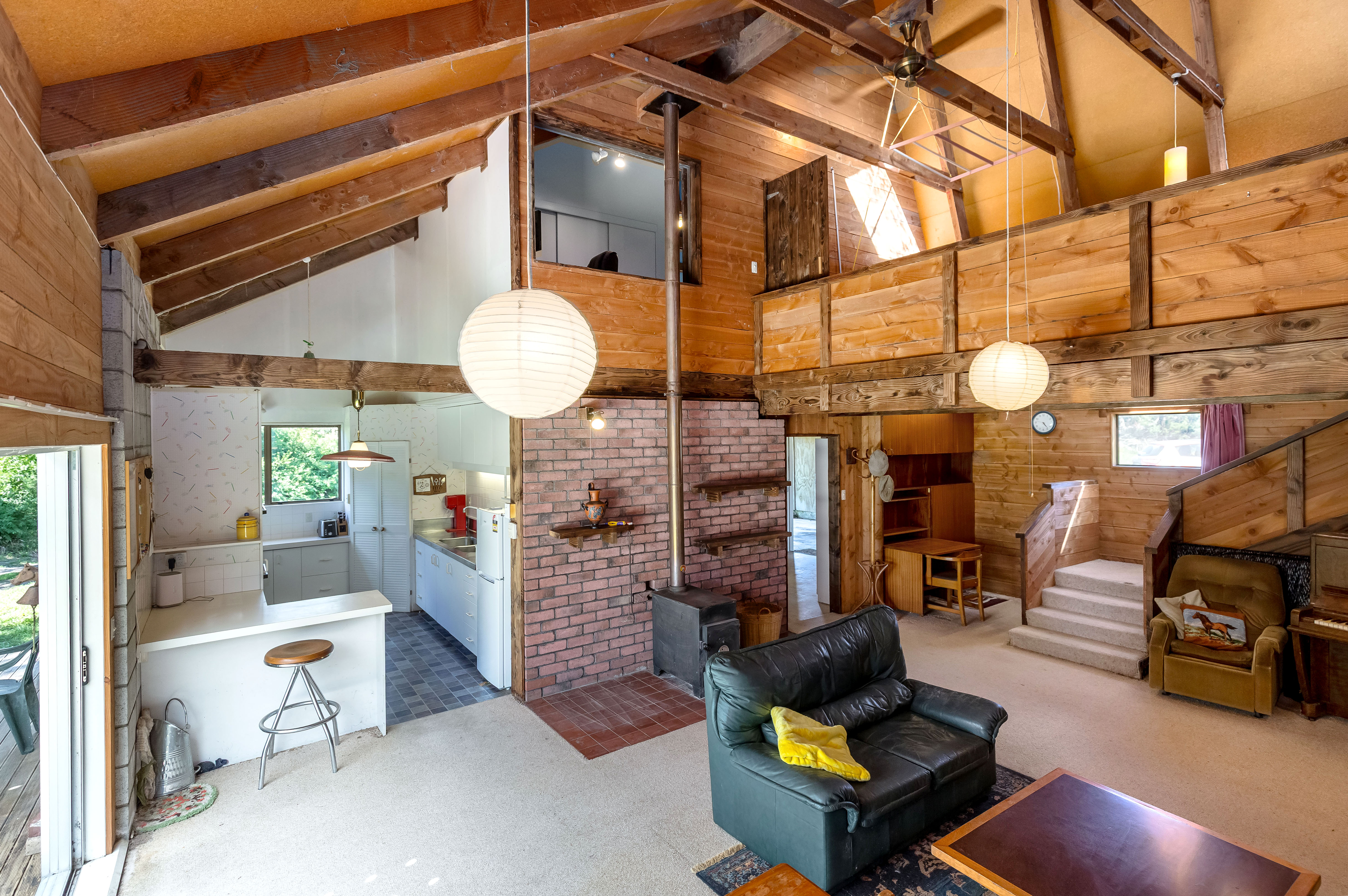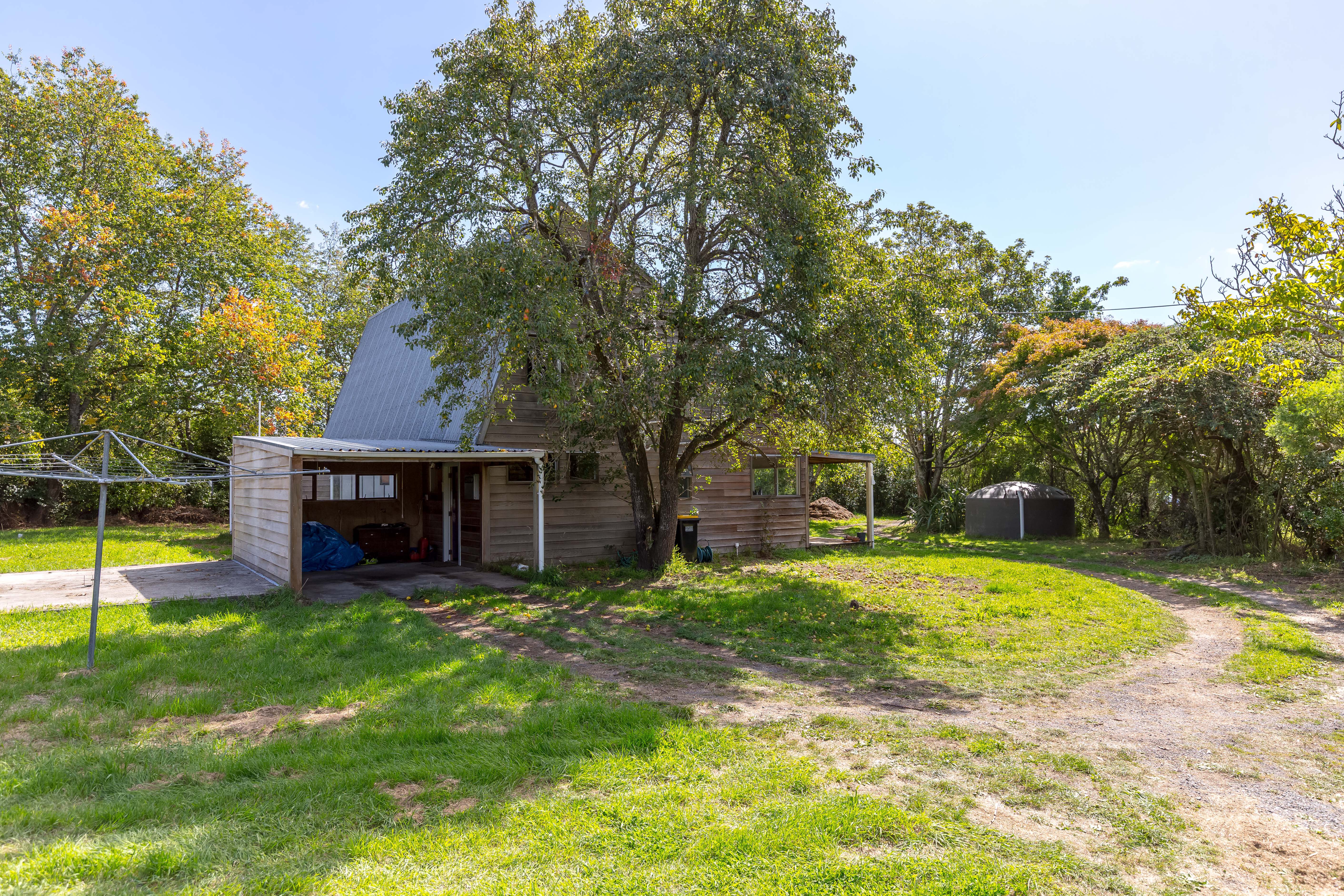 Set on an expansive 5,965m2 section in an excellent lifestyle location just a few minutes walk to town, this property offers space, character, and exciting potential to add value. Surrounded by established trees, the setting is private and peaceful while still offering the convenience of nearby amenities. The home offers rustic charm with warm timber elements throughout and impressive soaring ceilings in the main living area, creating a wonderful sense of space and character. The open-plan kitchen, dining and living area, complete with a breakfast bar and double oven, flows effortlessly to a covered deck with louvre system, perfect for relaxed outdoor living and entertaining. The main residence features three bedrooms, with the primary enjoying its own ensuite. A wood burner delivers cosy warmth, while ceiling, wall and underfloor insulation provide year-round comfort. Practical features include a separate laundry and mudroom, while the upstairs landing offers a versatile space ideal for a home office or children's play area. Adding further flexibility is a self-contained granny flat featuring an open-plan layout with a kitchenette that opens to a private patio, a large bedroom, and a bathroom with a wet-floor shower and separate toilet, ideal for extended family, guests, or potential income. Outside, the property benefits from town water supply, a large water tank for the garden, plus a carport and a two-bay shed which provides excellent storage and workspace. With good bones, loads of character and scope for further improvement, this is a rare opportunity to secure a lifestyle property with charm, space and future potential.