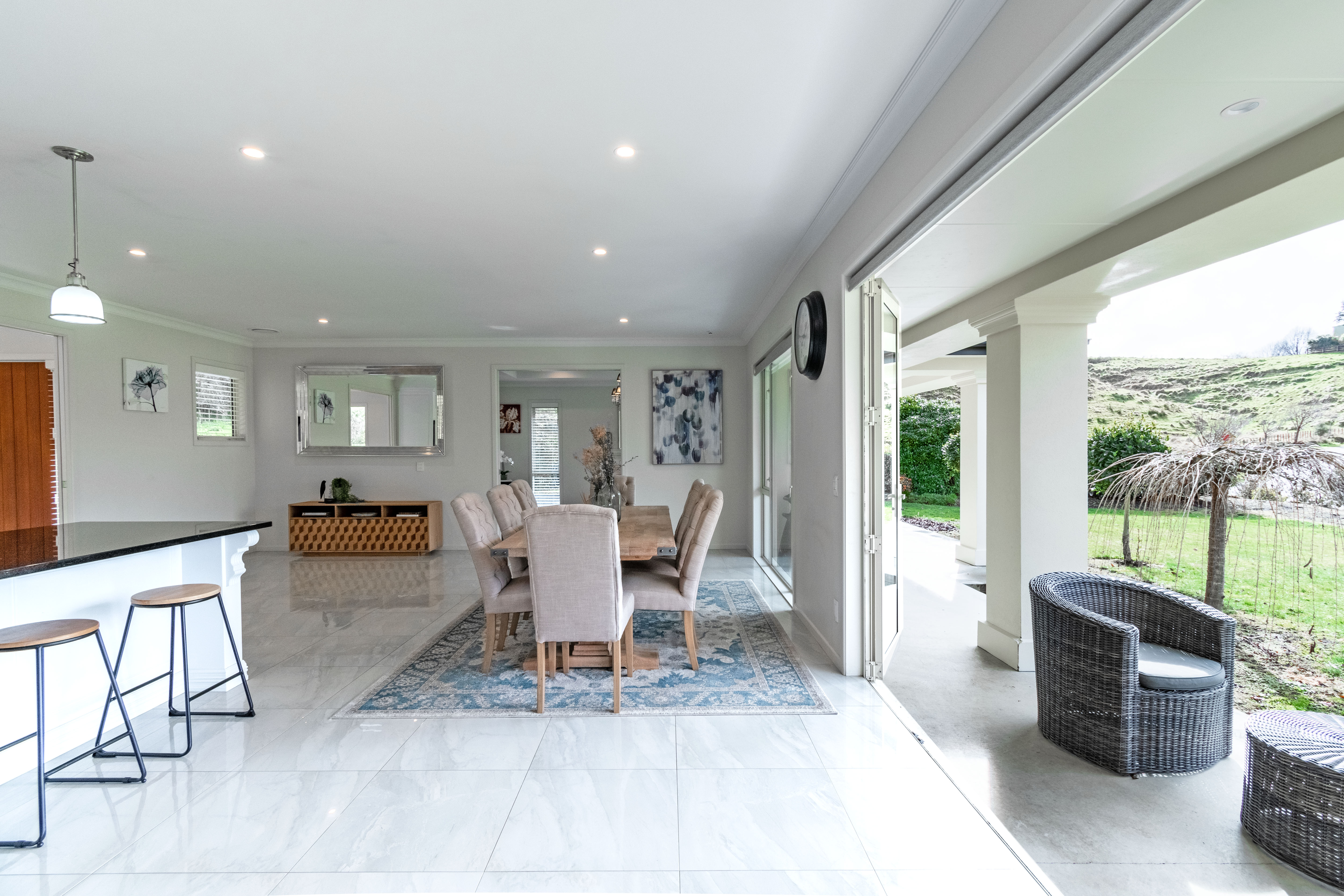 Step into sophistication with this exquisite, architecturally designed 5-bedroom residence. Spanning an expansive 1900m2 of lush grounds, this 2015 Diamond Homes masterpiece beckons. Upon arrival, the grand entrance with its elegant, tiled flooring sets a tone of luxury that pervades the entire property. The heart of the home is undoubtedly the stunning kitchen, a culinary dream with its sleek granite benchtops, fabulous walk-in pantry, and a generous open plan layout that flows seamlessly into the dining area. Relaxation is paramount in the plush lounge, where a cozy gas fire awaits to warm the soul. The home further boasts an internal vacuum system and a moisture master ventilation system, ensuring a comfortable and healthy living environment. Magnificence is in the details; from the sparkling tiled floors to the ornate chandeliers, every aspect of this home exudes class. French doors open from the living areas and bedrooms to reveal manicured lawns and charming garden patios, an idyllic setting for both intimate gatherings and grand entertaining. The master bedroom is a private sanctuary featuring a generous ensuite and a designer dressing room that will leave you in awe. Accompanying the master are four additional spacious bedrooms, each with double robes, catering to the needs of a growing family or guests. Storage is plentiful, and the comfort of efficient central heating runs throughout the house. A dual garage with space for three vehicles adds convenience with internal access. Situated a stone's throw from the Taihape township, set back from the main road, and surrounded by established trees, this tranquil retreat offers privacy and prestige. Ready to exceed expectations, 18 Wharua Road is more than a home, it's a statement of unrivalled elegance and quality. View by appointment.