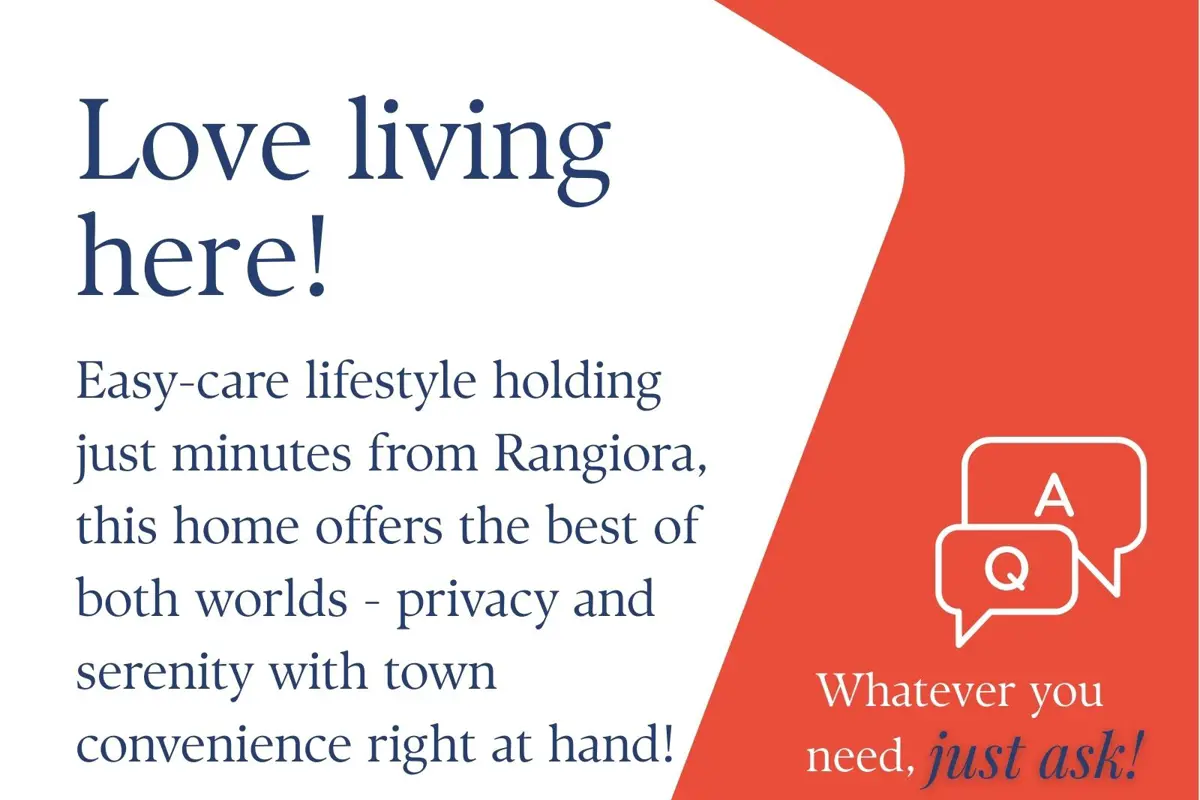Viewing by appointment - please call to arrange your viewing. Tucked away on an easy-care lifestyle holding just minutes from Rangiora, this one-owner home offers the best of both worlds - privacy and serenity with town convenience right at hand. Designed with light, comfort, and flow in mind, this home stands apart! What’s inside: From the moment you step in, the creative design catches your eye - free from straight lines, with mono-pitch angles inviting natural sunlight throughout. The open-plan living, dining and kitchen is perfect for everyday life or entertaining, featuring stone benchtops, two Fisher & Paykel dish-drawers, a gas hob, Samsung wall oven, and Smeg rangehood. A large separate lounge with built-in speakers flows seamlessly to the deck with lighting, sun blinds, and outdoor audio. Upstairs, the adults’ retreat is a true sanctuary - a master suite with private balcony, walk-through robe and tiled ensuite, plus a study tucked just beyond. Three additional bedrooms, a stylish tiled main bathroom, and a separate laundry provide space for family and guests. A carpeted double garage with internal access adds practicality. What’s outside: The lifestyle block is designed for ease - tree-lined driveway with in-ground lighting, a silent GPS dog fence and plenty of outdoor living spaces to enjoy. The section is low-maintenance yet private, giving you space to breathe without the upkeep. Why live here: Only minutes from Rangiora’s shops, cafes, and schools, yet perfectly positioned for peace, quiet, and privacy. It’s the best of lifestyle living without compromise! Your move: If you’ve been searching for a home that blends thoughtful design, modern convenience and lifestyle ease, this is it. Have questions? Would like to view? Whatever you need, just ask!