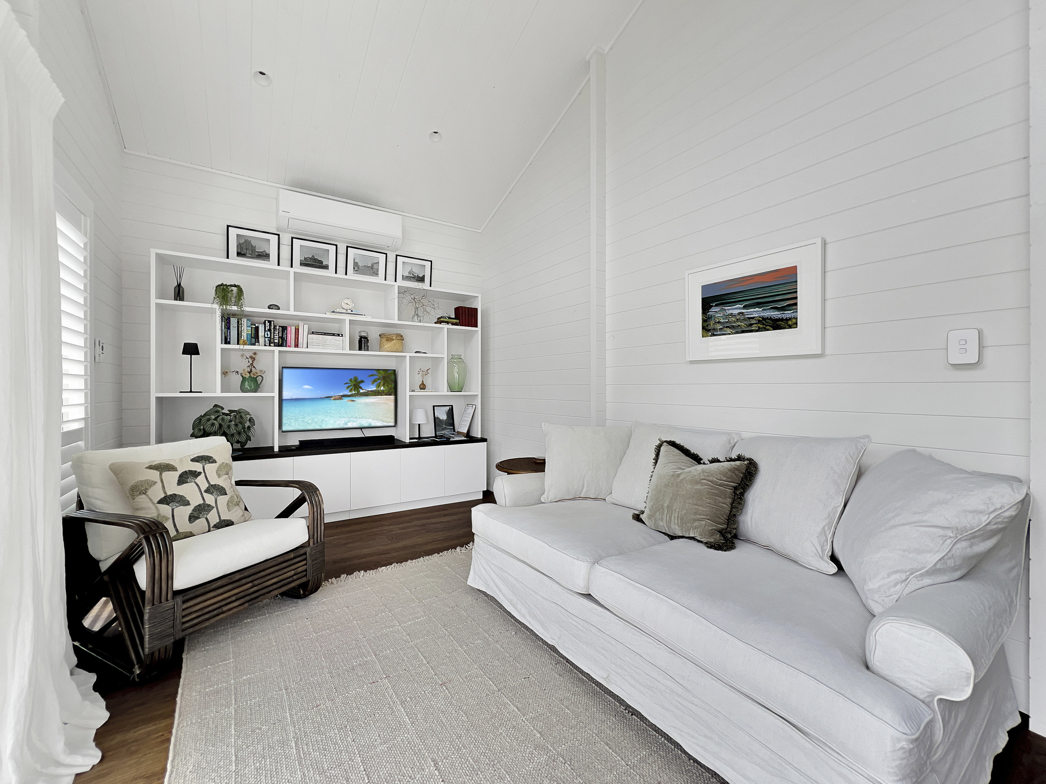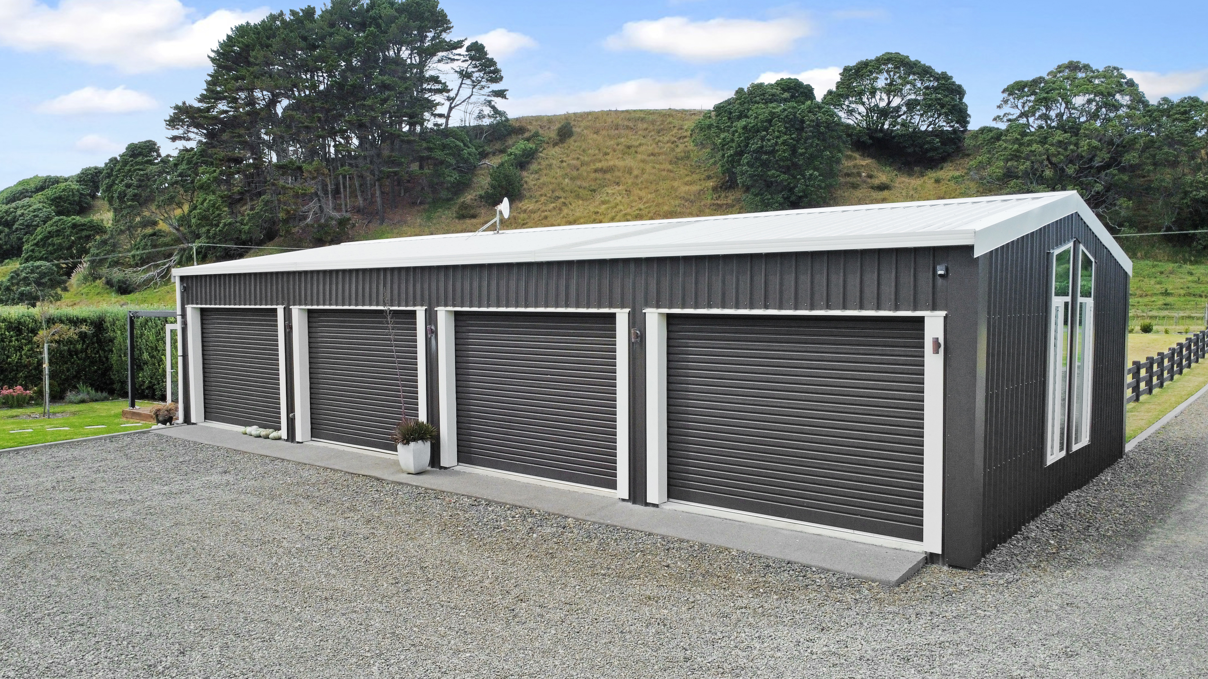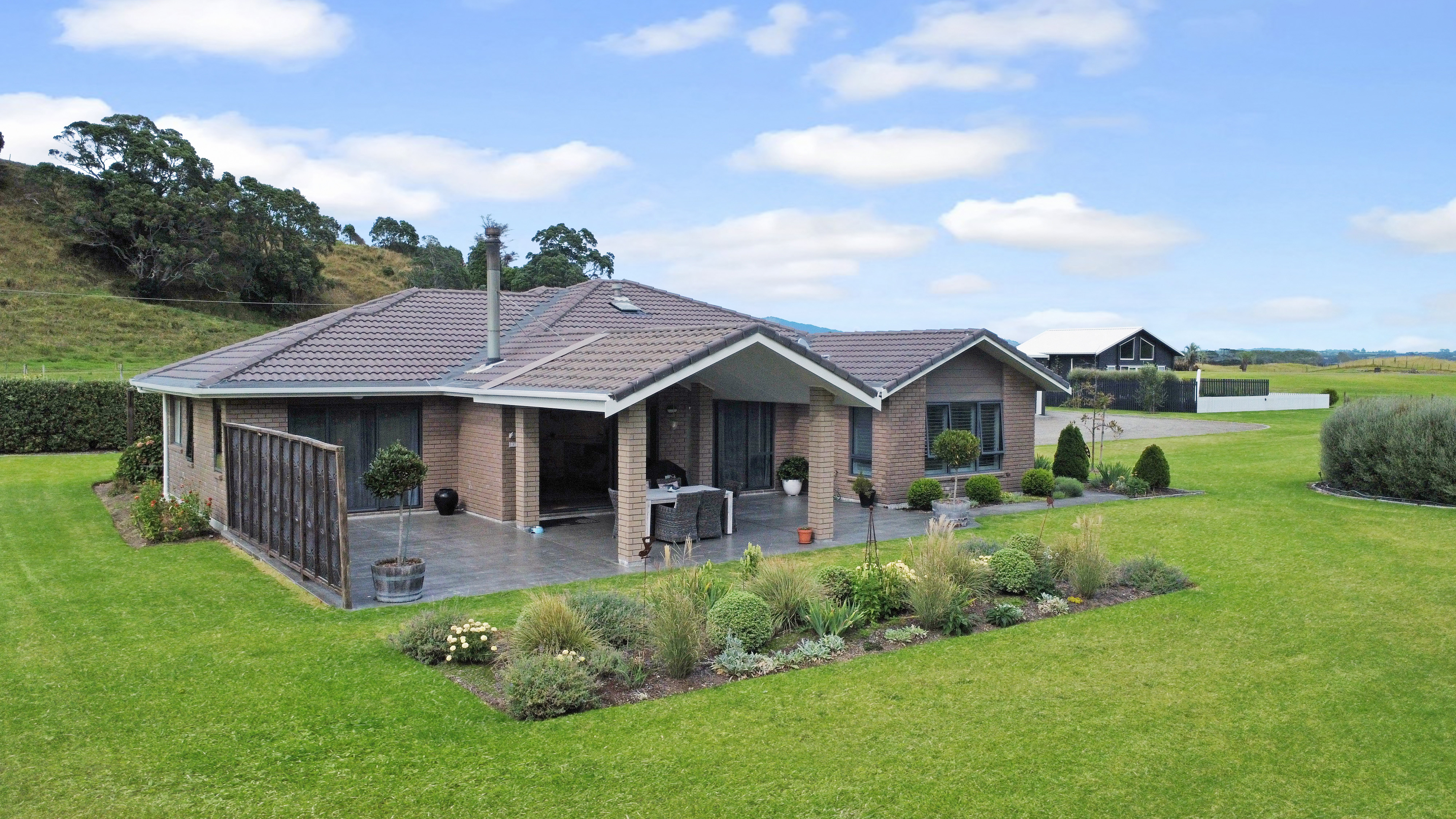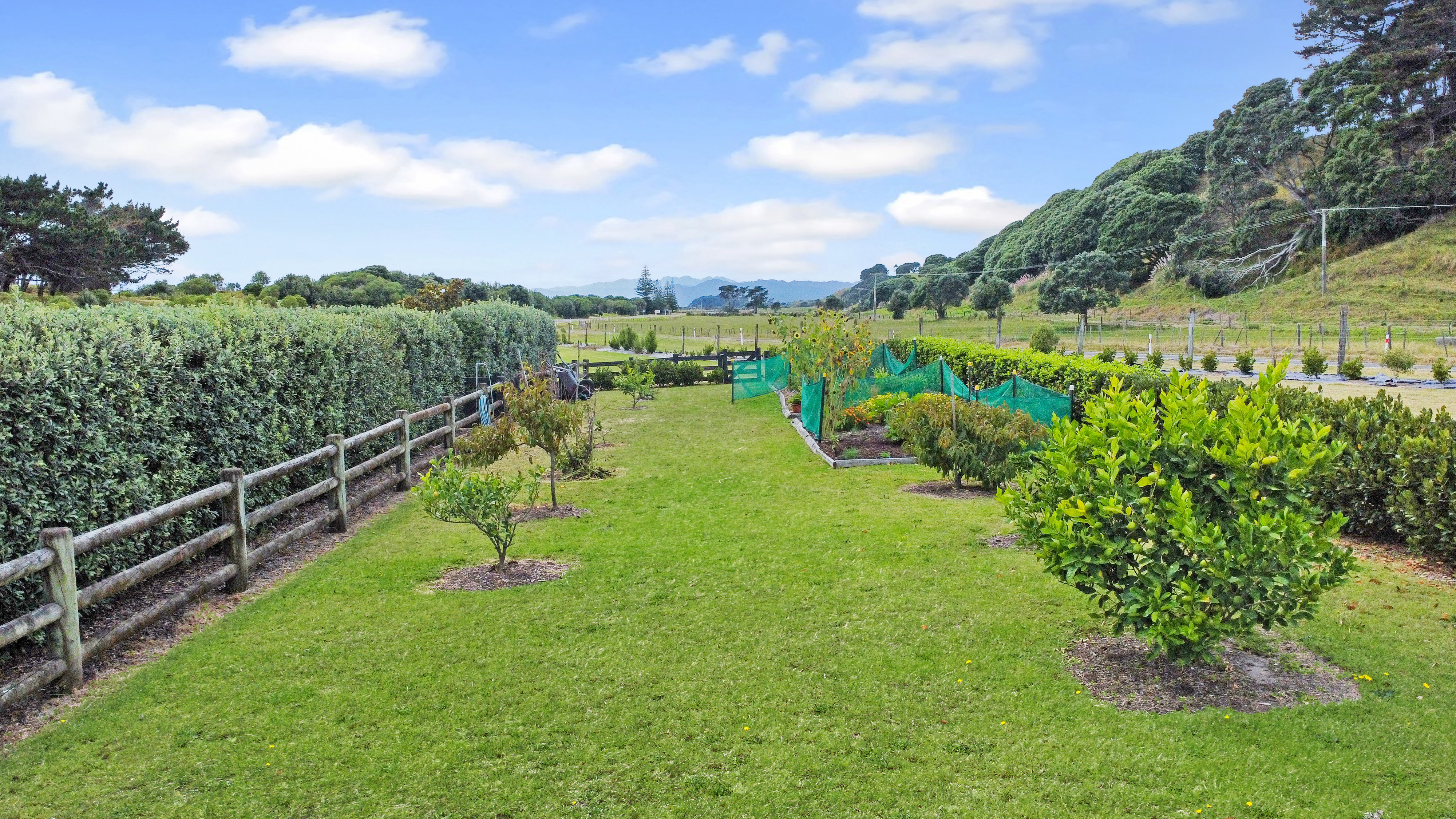 Fixed floor coverings, Light fittings, Blinds, Drapes, Rangehood, Dishwasher, Smoke detector(s) x 4, Auto Garage Door Opener x1, Bath, Clothesline, Double Wall Oven - Electric, Extractor Fan x2, Garden Shed, Water Reticulation System, Letterbox, Mirrors, Satellite Dish, Security Lighting, Water Tanks - 3 x 25,000 litre, 1 x 10,000 litre, Outdoor Shower (cold) x2, Bin Storage, Wood Storage, Trough by office, Laundry Tub + Bench (gardening), Induction Hob Cottage Chattels: Oven combined Microwave Oven, Induction Hob, Dishwasher drawer x 1, Heat pump x 1 and x 1 remote, Ceiling fans x 2, Ventilation fan in laundry (vented for dryer), Extractor fan (bathroom), Underfloor heating (bathroom), Heated towel rail x 1, Smoke detectors x 2, Fixed shelving/cabinets, Dining table (fixed), Gas califont hot water, Security lighting, Bin storage (Excluded Chattels: Glasshouse, Security Cameras, Outdoor Ornaments and Pots)