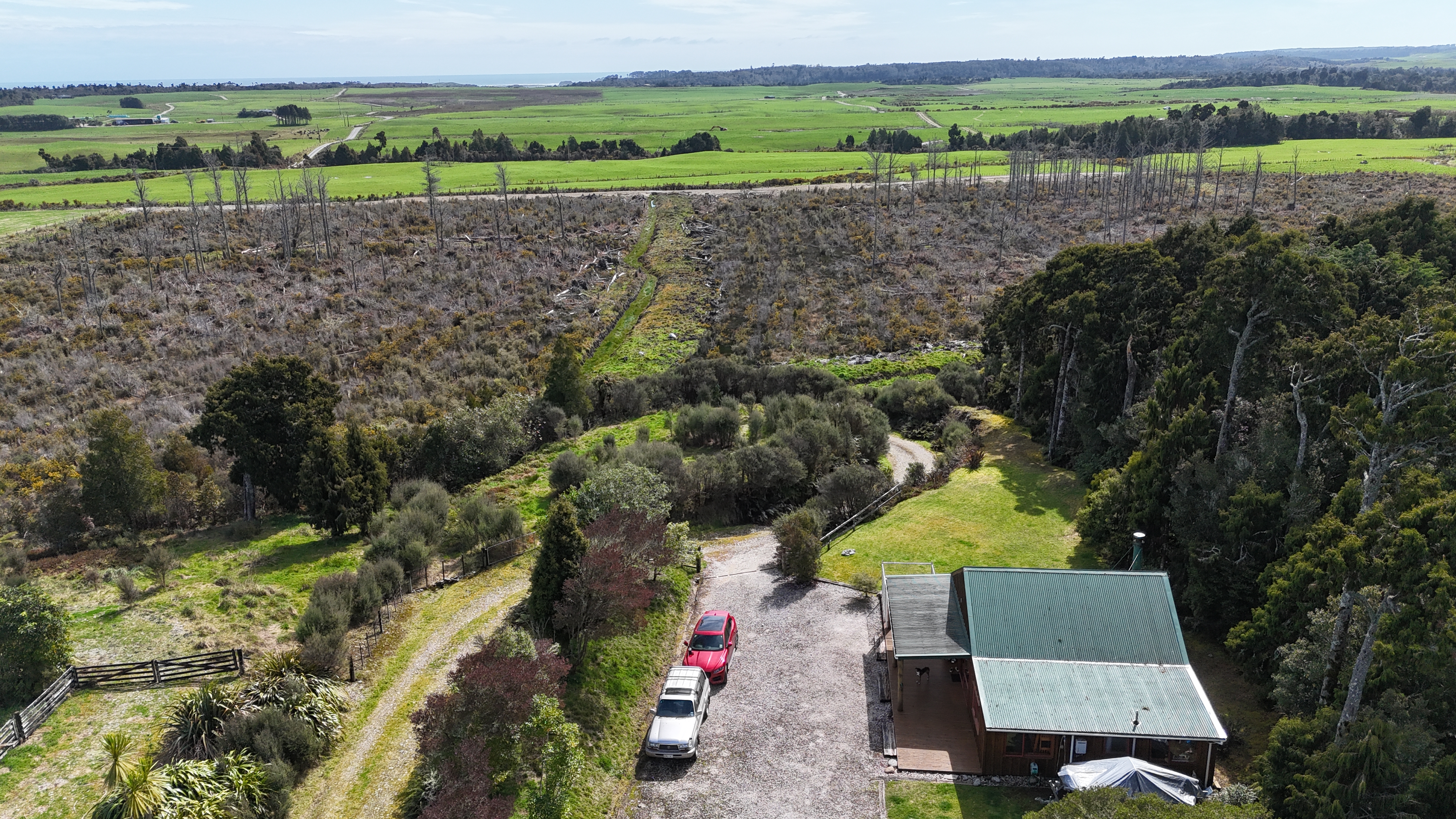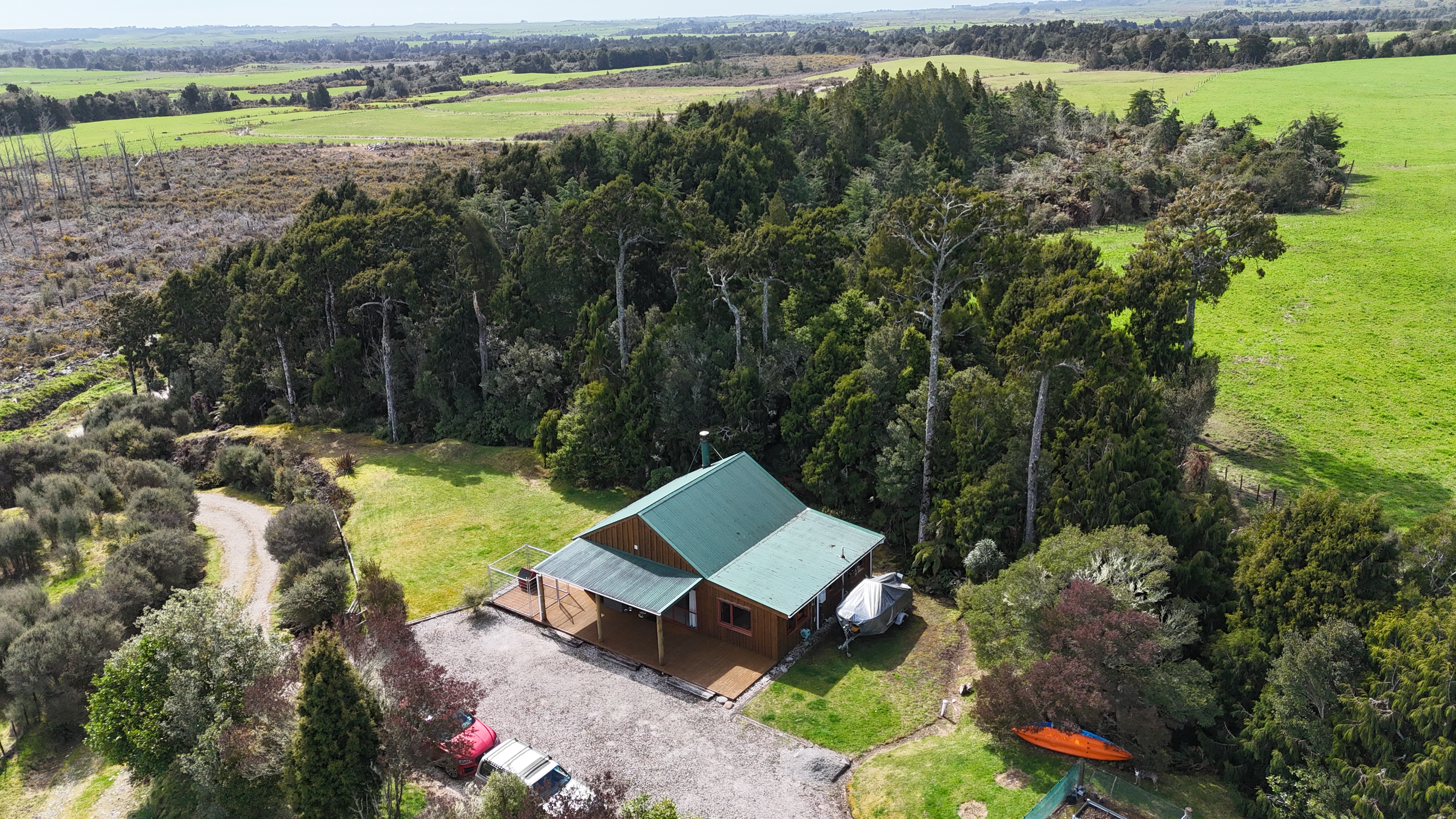 Nestled beside 2 hectares of native bush, this two-bedroom home offers genuine off-grid living with all the essentials sorted. Complete solar setup (4.2kw) with battery storage, wind generator, and backup generator ensures reliable power year-round. The open-plan living space features a modern kitchen with breakfast bar and striking Hokitika schist fireplace. Interior macrocarpa lining and board-and-batten exterior blend seamlessly with the natural surroundings. Enjoy distant coastal views from the deck - perfect for BBQs while watching native birdlife and clear night skies. A short walk takes you to the lake where black swans and ducks make their home. Just 18km from Westport (15-minute drive), this property combines genuine privacy with reasonable access to town. Gas hob for cooking, ample deck space, and that hard-to-find 'x-factor' location make this a standout opportunity. Lots to like about this location.