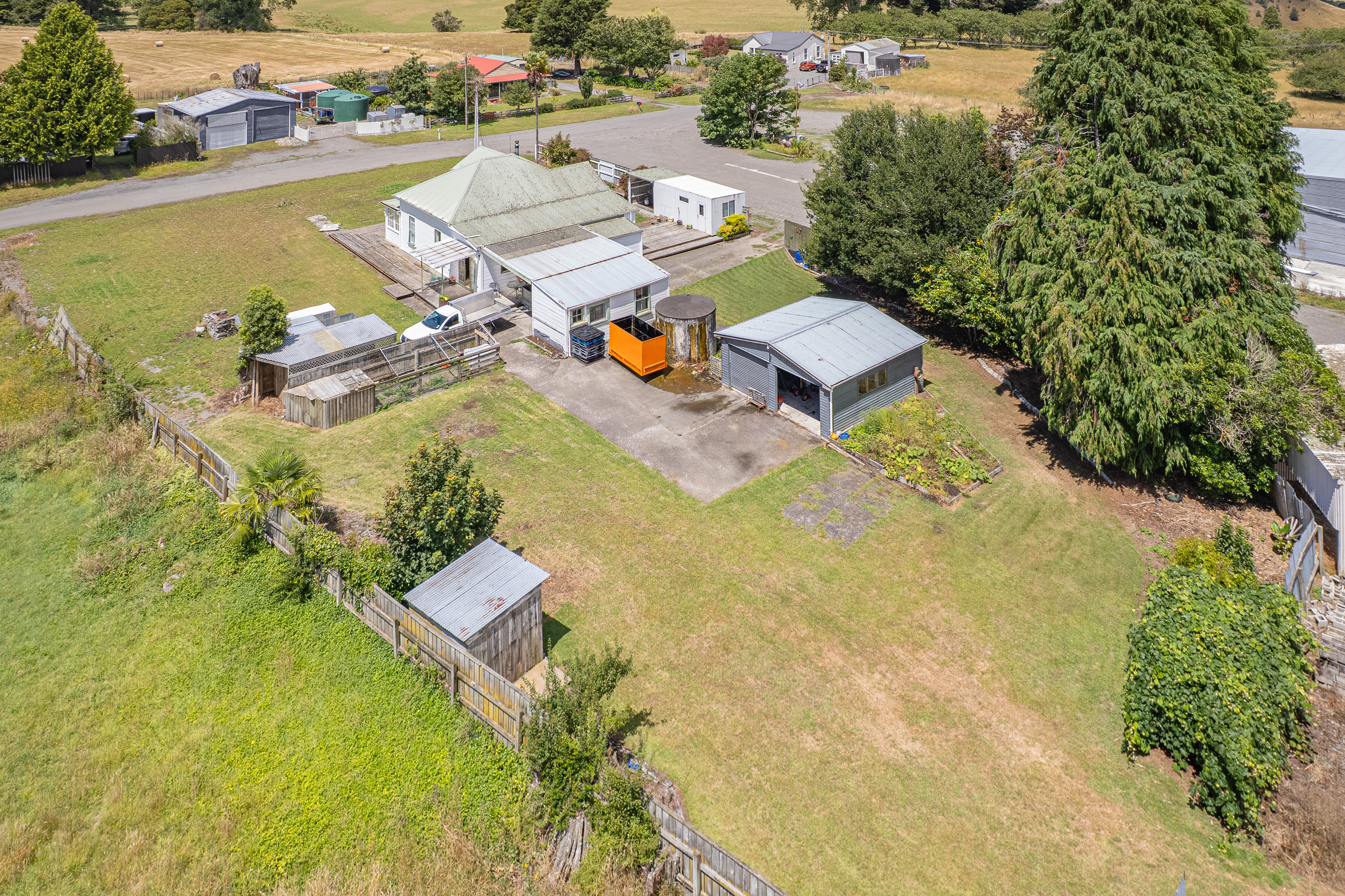 At the heart of this versatile property is a comfortable three-bedroom home offering open-plan living, with French doors opening onto a deck that provides a seamless connection to the outdoors. The home is set within large grounds, creating a private and spacious living environment. Complementing the residence is a substantial former contractors’ depot, offering extensive working and storage facilities. Key features include a large drive-through truck workshop suitable for heavy vehicles, a service pit for maintenance, and multiple supporting storage and utility structures, making the property exceptionally well suited to transport, contracting or rural service operations. The property is held across two titles totalling approximately 2.01 hectares, providing flexibility to purchase both together or either title separately. One title incorporates the dwelling and depot facilities, while the second, on its own separate title of approximately 1.07 hectares, has independent access and is improved with a large-bay, high-stud storage shed originally constructed for fertiliser storage. Further complementing the bare land block are two additional buildings used in the running of livestock, providing practical infrastructure to support grazing and rural operations. Positioned just off State Highway 1 via a short side road, the property enjoys excellent accessibility while remaining secure and private. Connected to the local water scheme, this is a property that works well, equally suited to contractors, transport operators, farming enterprises or those seeking a well-equipped lifestyle opportunity with genuine flexibility.