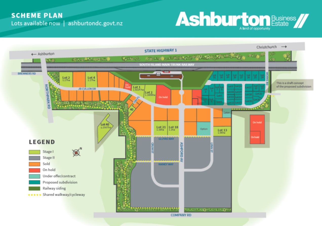 This newly developed Ashburton Business Estate is set right in the heart of one of New Zealand's most progressive agriculture and pastoral regions. The sites range from 0.1332ha upwards. Strategically placed for optimum accessibility to State Highway One and possibly a future railway siding. There are several buildings currently under construction - be in soon to have our choice of sites.