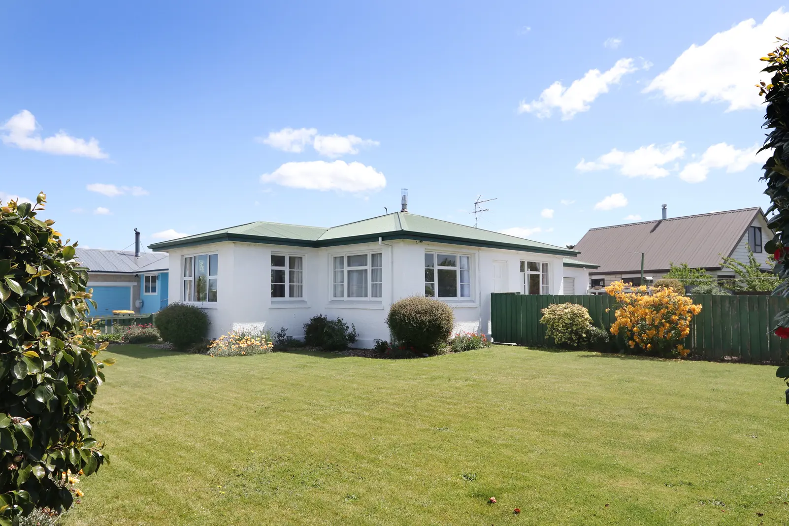 With its three bedrooms and sunny outlook, this home would make the perfect first home. Sunny lounge and adjoining kitchen, good size bedrooms, central bathroom, spacious laundry with internal access to the single garage offering plenty of space for extra storage and workbench. Mostly re-roofed and featuring some double glazing, this home is located on a corner section with spacious lawn, established gardens and fully fenced making it safe and secure. So don't delay and move in before Christmas!