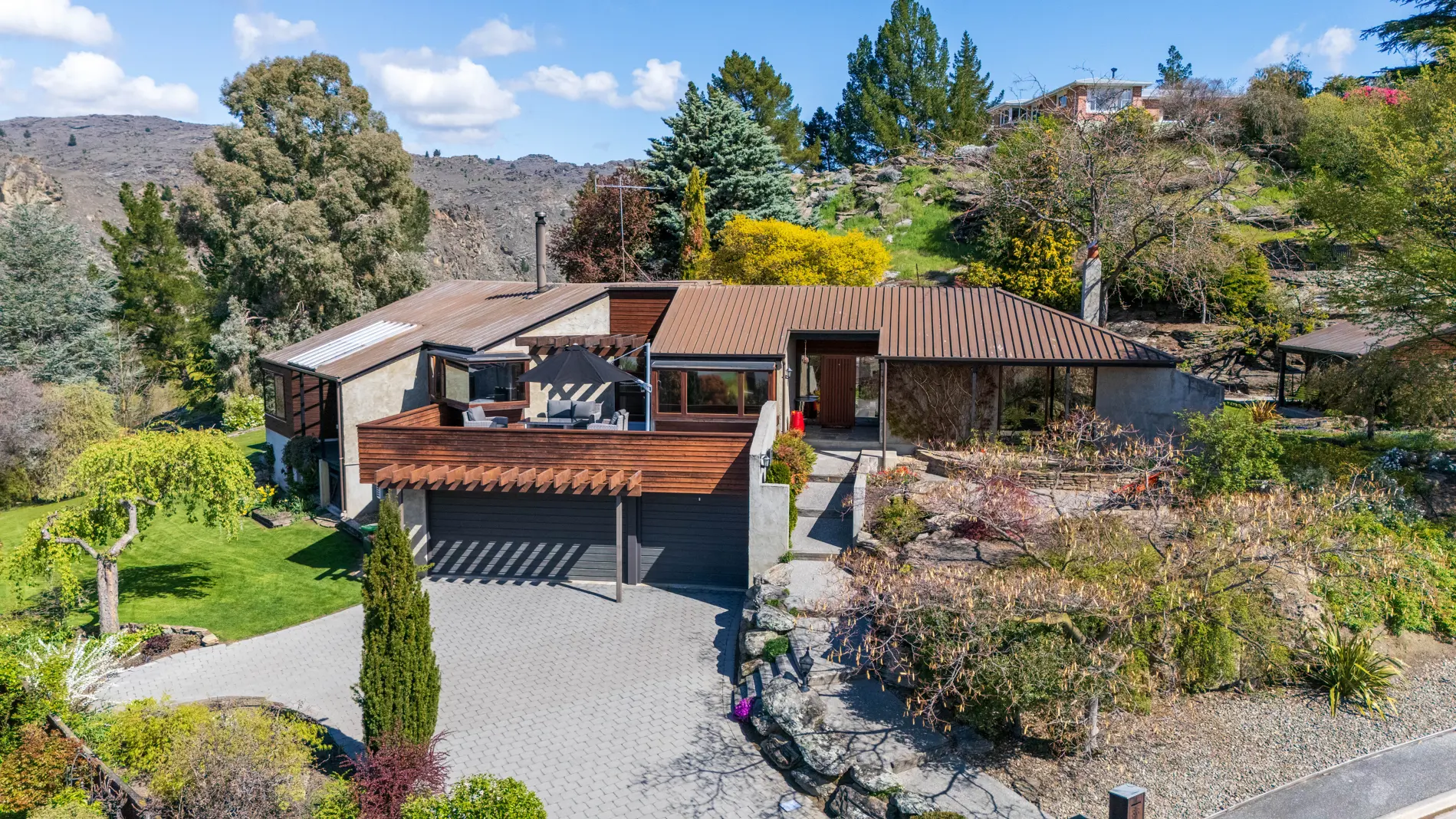 Designed by John Blair, acclaimed Queenstown architect. The detail in the design needs to be viewed to be fully appreciated. It's incredibly refined and smooth, the spaces crisp and everything is handled with the utmost dexterity. Approaching the residence you have a sense of something very special, you would think it has only recently been built, rather than the 1970's. The welcoming front entrance takes you into a foyer with formal living on one side and family living on the other. Carefully grafted high stud wooden ceilings and feature fireplace provides a very special space to entertain. The family living area continues the theme, fully equipped kitchen opens out to the dining area and cosy living space. Massive glazing draws the sun and views into focus providing real connection to the Central Otago environment. If you prefer to be outside access to the deck is from the living area. The master bedroom is positioned to provide privacy from the rest of the residence, with views over the river, great way to start the day. Positioned on an elevated 3183sqm landscaped site, with sunny views over the Clutha River, the design by John Blair has enabled access to a secluded, private and sheltered outside entertainment area, which has witnessed weddings and many family gatherings. Sealed driveway to the triple garage an added feature. 38 O'Neill Crescent is an easy walk to the town centre or if you prefer a bike ride, the river track is on your doorstep. Seldom do masterpieces from the 1970's come to the market, you will not be disappointed with this property. Viewing by appointment only.