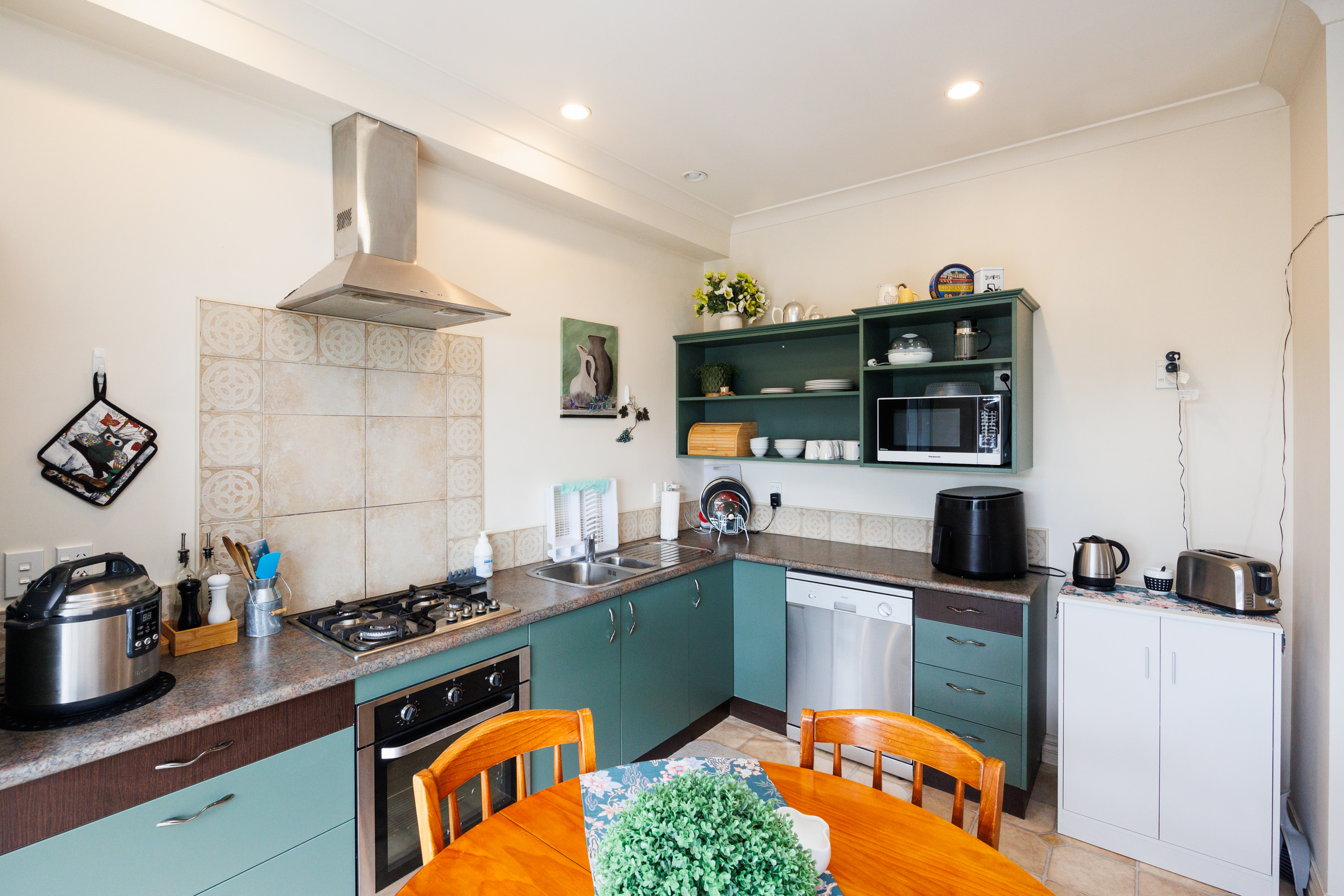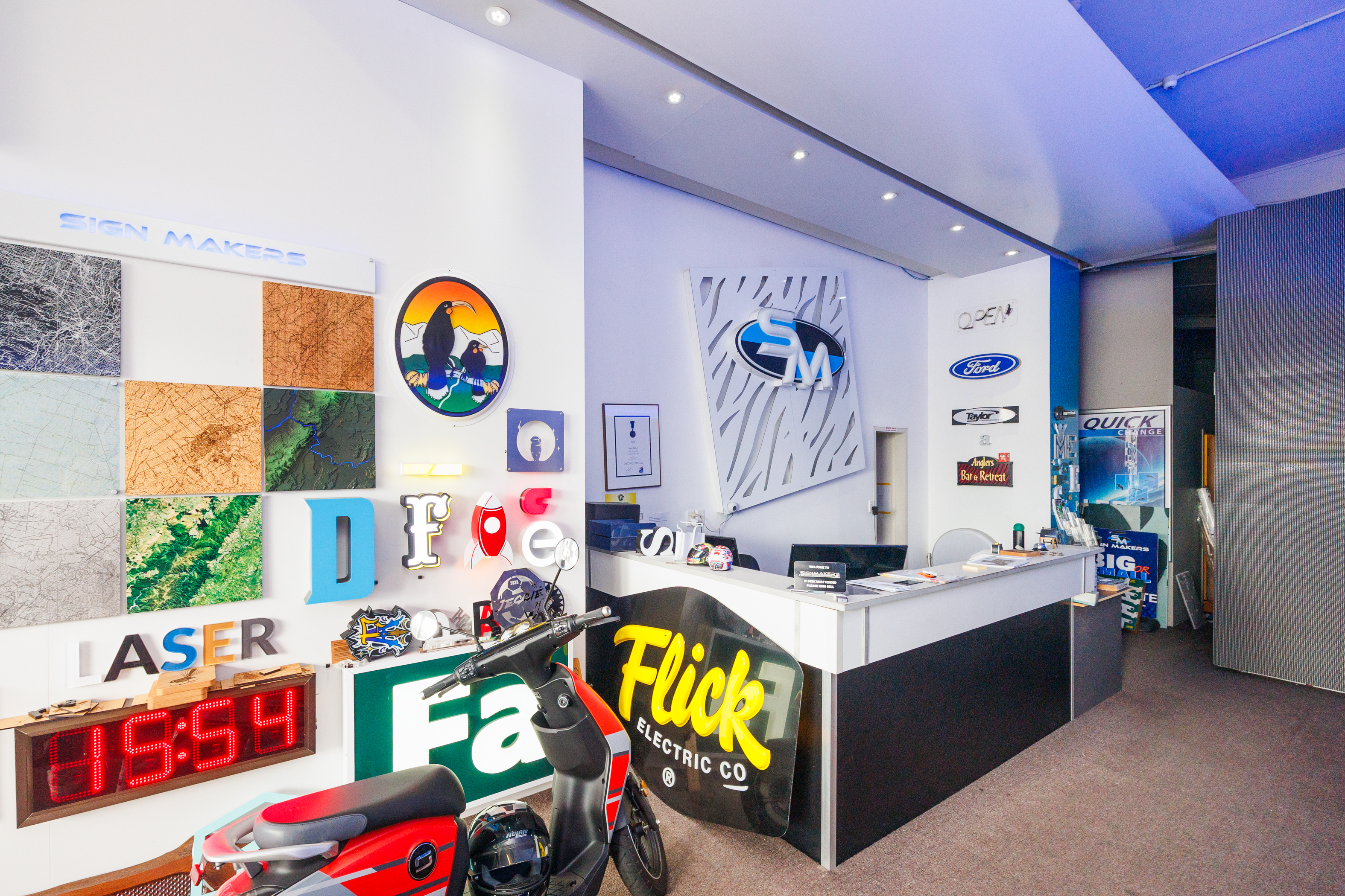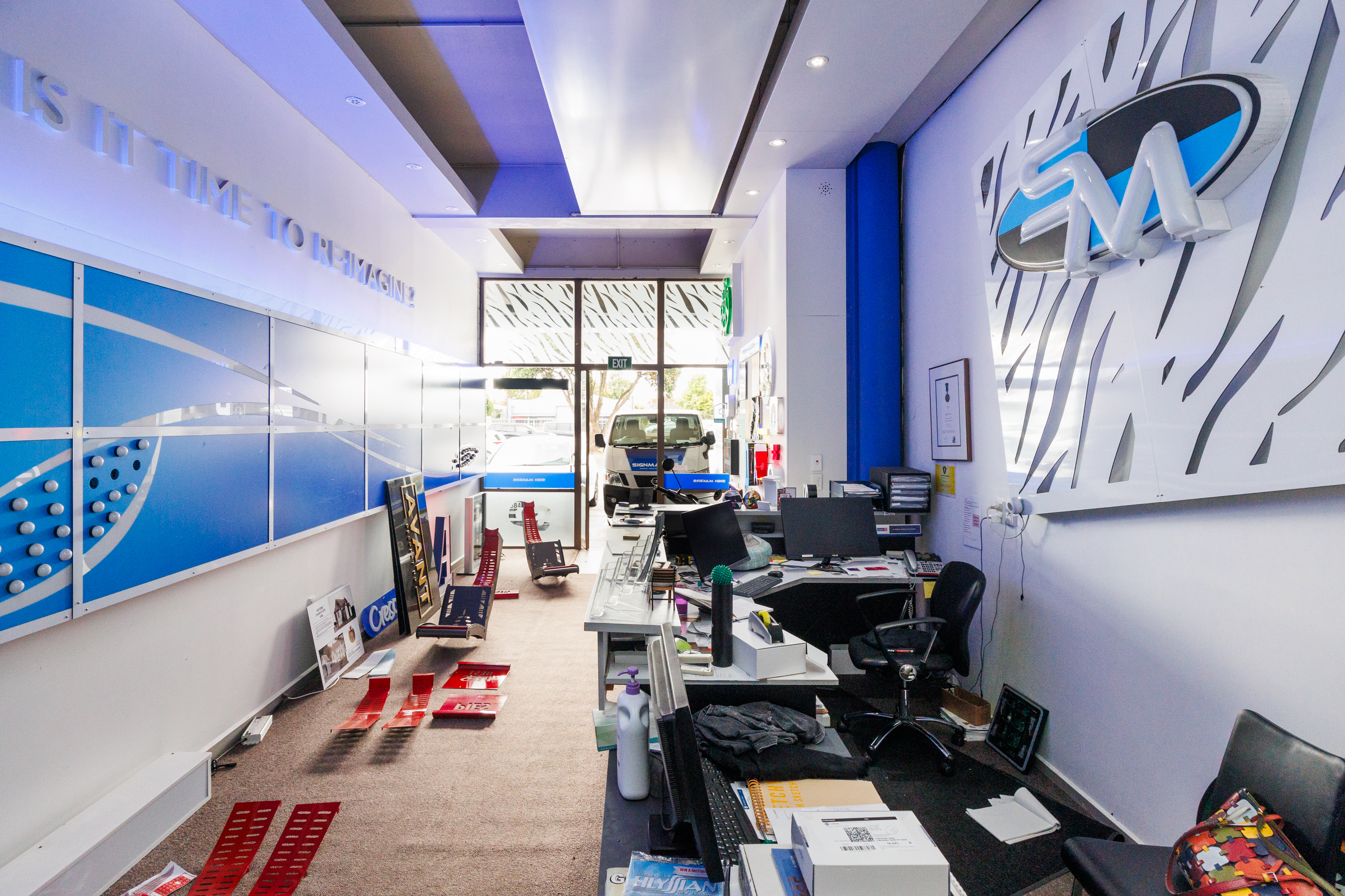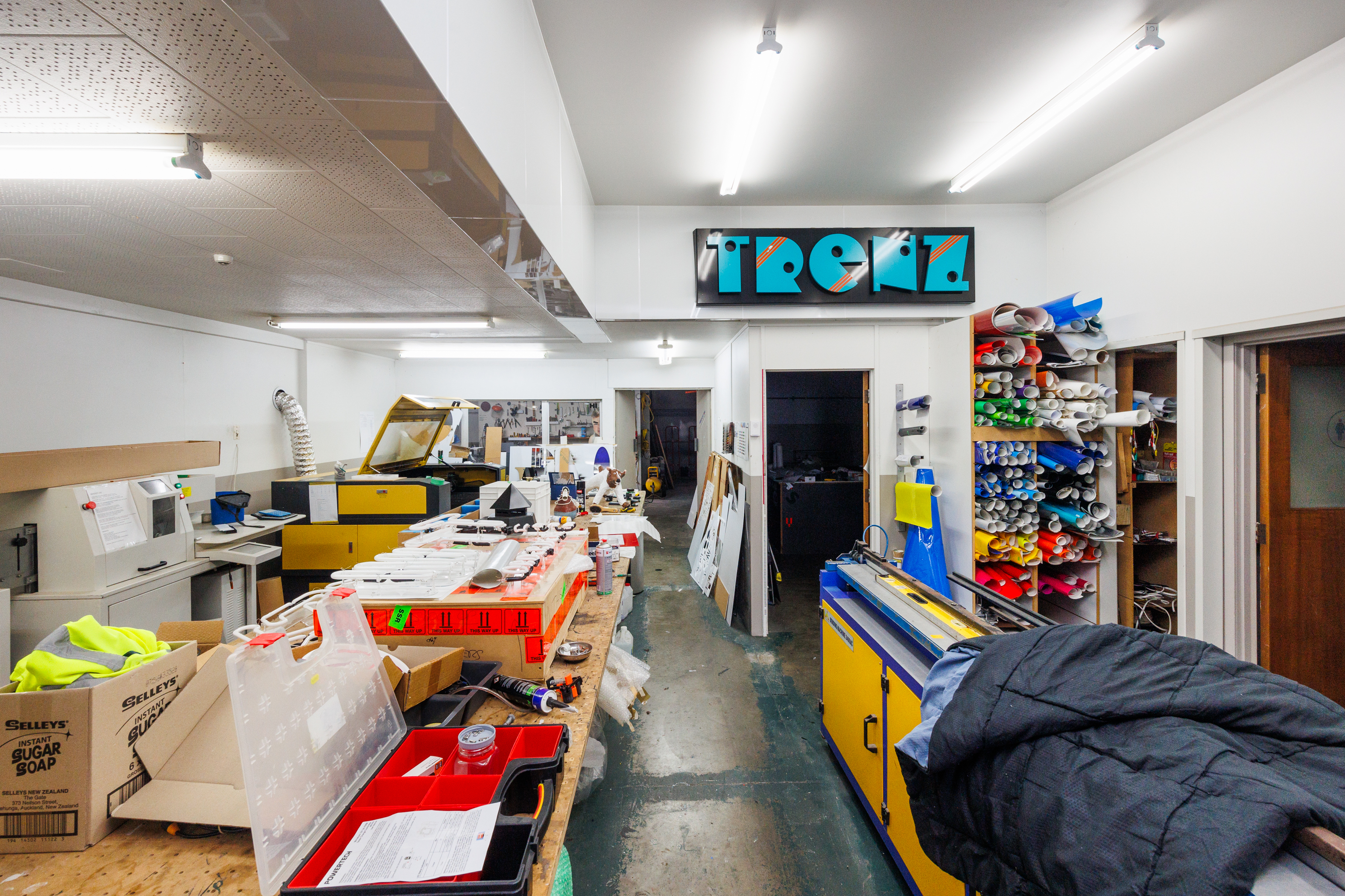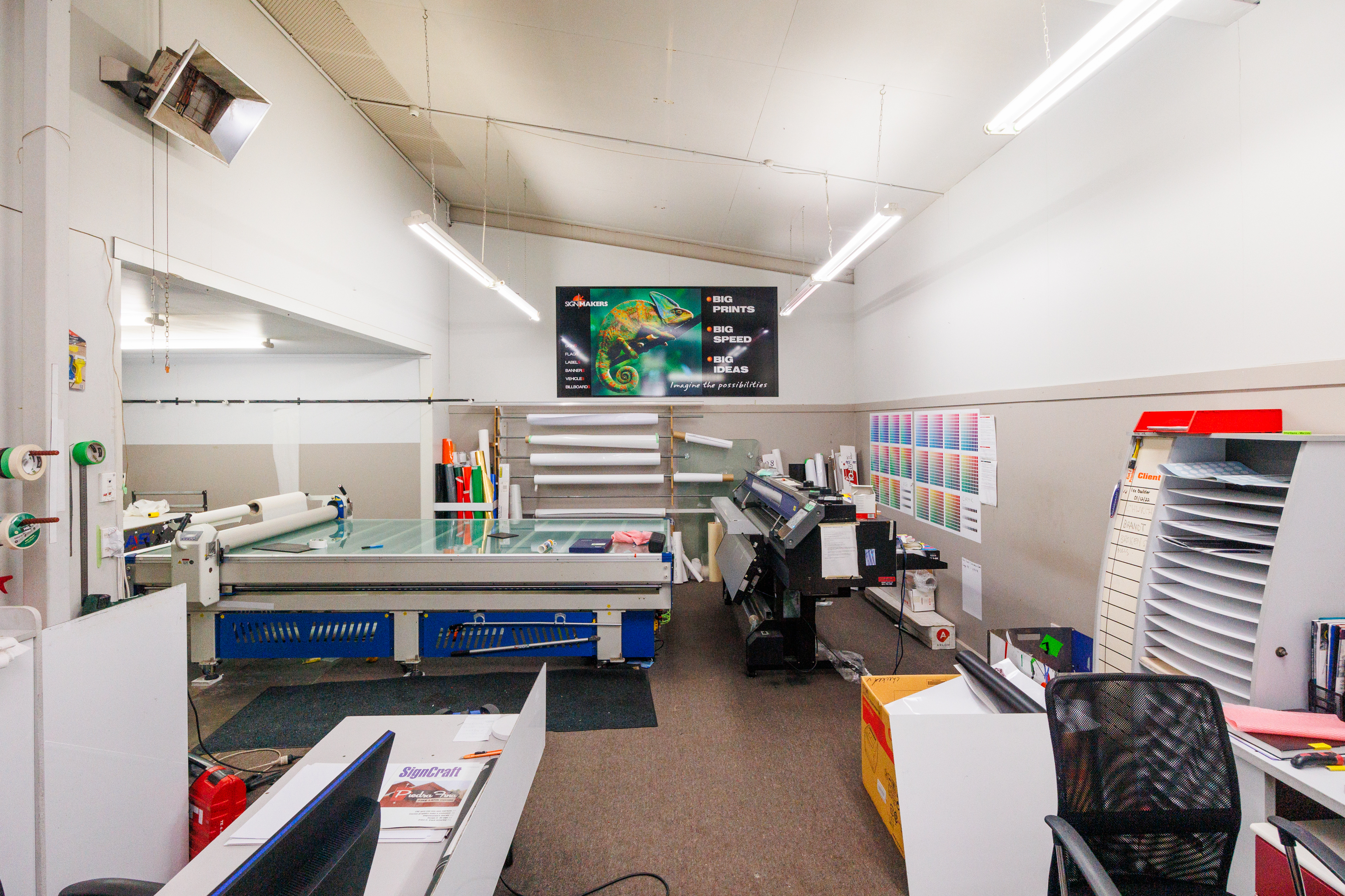 The home of Signmakers is for sale. This building comprises: • Ground Floor of 512m2 (more or less). • Comprising manufacturing/warehouse space which includes various workroom/workshop area with two kitchens and two toilets. • This ground floor is also set to be split into two tenancies if needed. • Access from Main Street is past any one of five car parks into the Signmakers reception or into the internal porch which provides access to the upstairs apartments, with each apartment has its own front door and staircase. • First-floor apartments 144m2 (more or less). + 96m2 decking. • Three-bedroomed apartment, four years left on a five-year lease. • Two-bedroomed apartment + study currently occupied by the owner. • The interior fittings are of a high standard, both apartments have individual outdoor areas and car parks available.