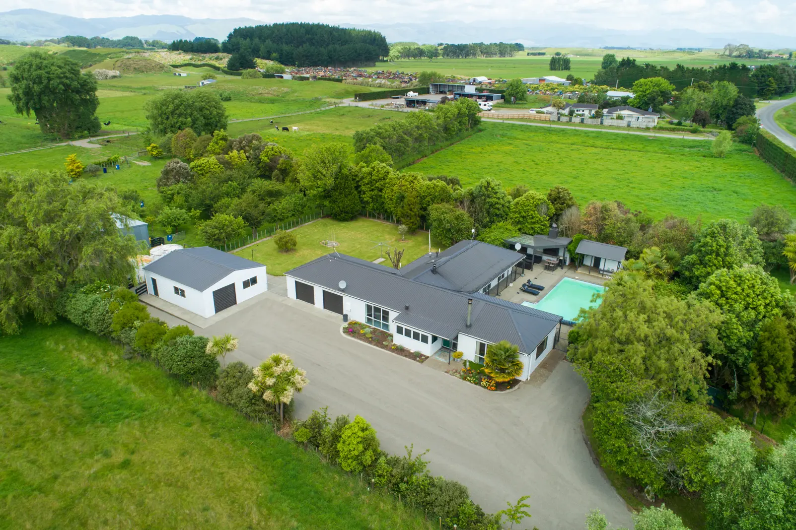 If you are seeking a beautiful family home on a private rural lifestyle section with 1.70 acres (more or less), take a drive down this country road and you'll discover everything you have dreamed of for you and your family! Step into the large main entranceway where you are led through to a spacious lounge, heated with a woodburner, keeping you super cosy in winter. An updated kitchen and dining area with sliding doors leads you out onto a concrete patio so you will never be far from your guests while entertaining. The kitchen features new cabinetry, a second woodburner, plenty of cupboard space and a kitchen island ideal for your morning cuppa or a glass of vino at the end of the day. Consisting of four bedrooms, a family bathroom, office, great sized laundry, and a rumpus room, you can be rest assured that there is plenty of room for all of the family here. The master bedroom is a retreat of its own, with a walk-in wardrobe, ensuite and a large picture window framing the lovely grounds. But wait, there's more! Relax poolside with your very own inground swimming pool with a fenced patio area for those fun summer months! Entertain a large crowd by the outdoor fireplace under the covered pergola or lounge out in the sun watching the kids splash around in the pool - entertaining just reached a new high! Additional to the internal access double garage, you will find great parking, a large standalone garage/workshop, a two bay implement/storage shed plus fenced paddocks for livestock. The sheds here are impressive! Set on a sheltered flat 1.70 acre (more or less) section with well established, low maintenance gardens complimenting the home and an orchard ready to harvest some yummy fresh fruit. This well-located property is only a short drive from Sanson, Ohakea Airbase, Palmerston North City and is handy to local country schools.