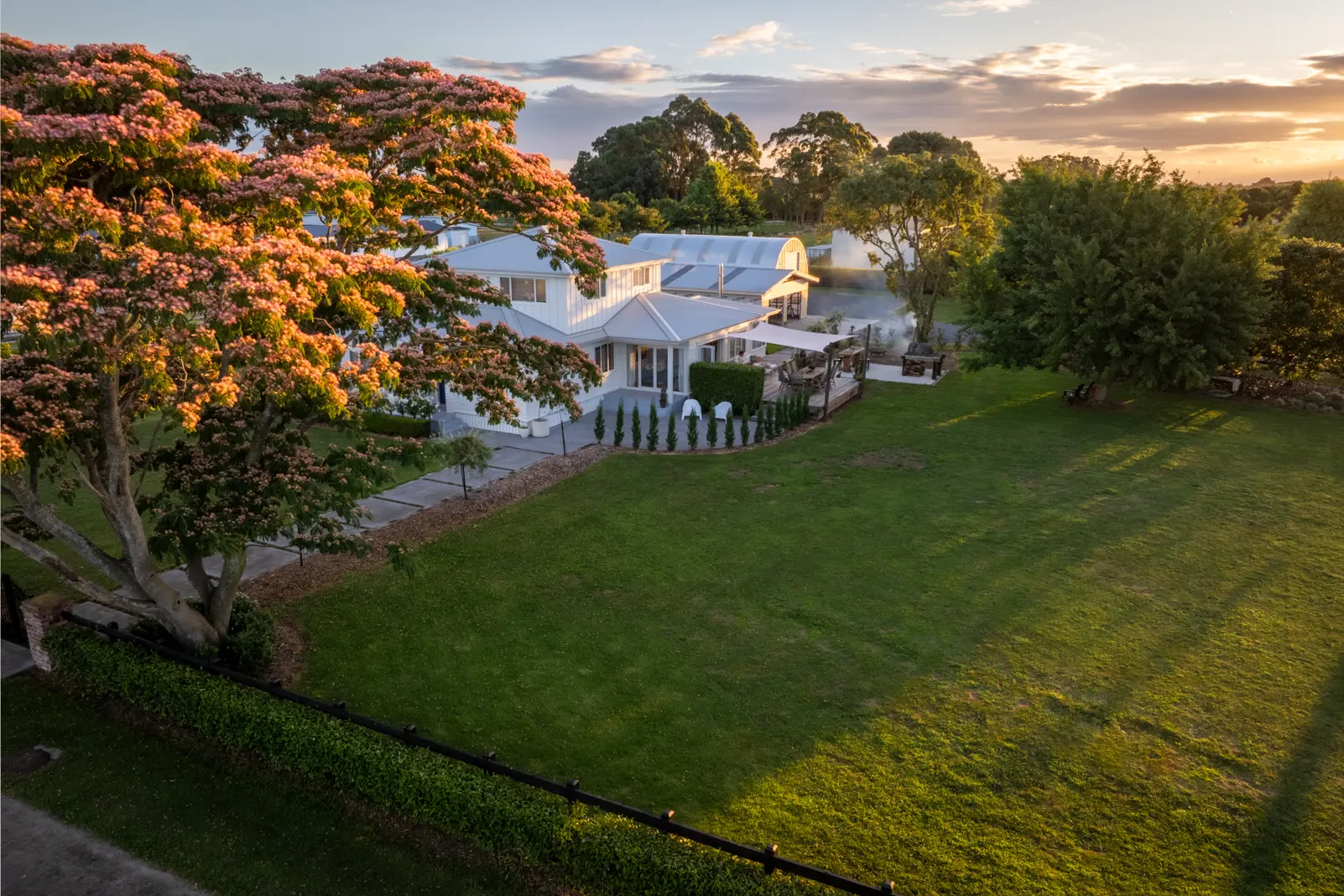 Infused with Hamptons-style charm, this gorgeous and impeccably renovated country home nestles on a private, mature block in a prime location close to Cambridge. Impressive from the moment of arrival, the property's reclaimed red brick gate pillars and carefully considered plantings set the scene for a dream lifestyle. Suited to family life, the two-storey residence contains four bedrooms, two bathrooms, mezzanine versatility, a bespoke entertainer's kitchen, indoor-outdoor aesthetics, and high-end comforts. Easy relaxation and effortless entertaining are par for the course. The central hub is the open plan country kitchen, living and dining that embraces expansive decking, alfresco niches, and a barbecue area. Quality appliances, custom-made cabinetry, statement lighting and a fabulous island/breakfast bar make the kitchen a pleasure to work in. A log burner is a focal feature of the step-down formal winter lounge. A mud room complements the built-in, country-size laundry. Ground level also contains three spacious, well-appointed bedrooms, a modern family bathroom and a guest powder room with a feature wall highlight. Upstairs presents a light and spacious mezzanine area perfect for quiet relaxation, a home office, reading room, extra lounge or nursery. The master suite is a heavenly retreat, with a walk-in robe, a modern bathroom and a stunning outlook across farmland and hills. Double glazing and ducted air-con keep the elegant interior ambient all-year round. The large circa 120sqm reclad garage has a workshop and room for a rumpus or gym, and an additional 150sqm approx. rodent and bird-free shed provides a rental income from a home styling business. There is space aplenty for a swimming pool and/or tennis court. Goodwood School is next door, and coveted schools are on school bus routes. Outdoor lovers will relish living near Te Miro's mountain bike track, a world-class velodrome and Lake Karapiro. Hamilton city amenities and sports facilities are a short commute.