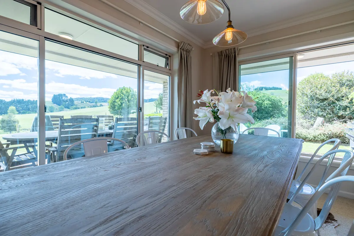 Nestled on 2 hectares of picturesque land, and only 16km from Cambridge this easy care north-facing solid brick home offers space, comfort, and breathtaking rural views. Step inside to a well-equipped kitchen, complete with an induction hob and breakfast bar, seamlessly flowing into the open-plan dining and family room. For added versatility, a separate formal lounge provides the perfect space to relax or entertain. Featuring three large bedrooms, each with its own full bathroom, plus a mudroom with a fourth toilet, this home is designed for effortless rural living. Storage is abundant, with a walk-through linen cupboard, attic space with lighting, and a carpeted double-plus garage with built-in storage and laundry. Outside, enjoy a fully fenced orchard, chicken coop, and veggie garden with potting shed, perfect for self-sufficient living. The deer-fenced paddocks are ideal for horses, sheep, deer or cattle, each with troughs for water. The large high-stud shed offers loads of parking for campers, boats and small trucks. and extra storage adds to the property's practicality. This is a fantastic family-friendly lifestyle property with something for everyone! Vendors are motivated to sell. Get in contact with the agents today to arrange a viewing!