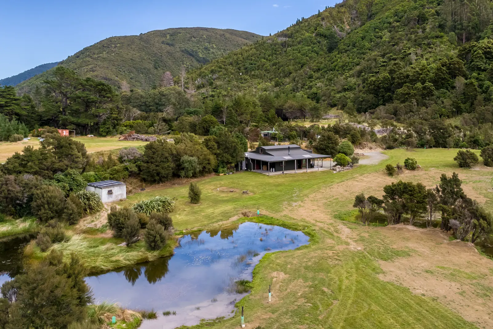 Nestled up in the beautiful and peaceful Mangatarere Valley, surrounded by native bush and constant birdsong, you'll find this little piece of paradise just waiting for its next loving owners. Built in 2008, this American Barn style house has four bedrooms, including the huge master room on the top floor. From here you can step out onto a private balcony, a great spot to enjoy a book or simply sit and reflect on how lucky you are to live in such an idyllic spot. Well insulated and double glazed, the house is beautifully warm and comfy in winter, with a wood burner/cooker providing plenty of heat. Power is supplied by a high-spec system consisting of 8 solar panels, generator and small hydro system all feeding into a new sealed maintenance free battery bank in its own power shed. The current owners have found this more than adequate for their needs. There's some finishing work to be done inside and out, so the opportunity is ripe to stamp your own touches on the property. With a bit of landscaping outside and decorating inside this wonderful 4.85 ha rural retreat will be complete. For your own private viewing, call Jillayne McGregor or Stephen Penn or we look forward to seeing you at the open days.