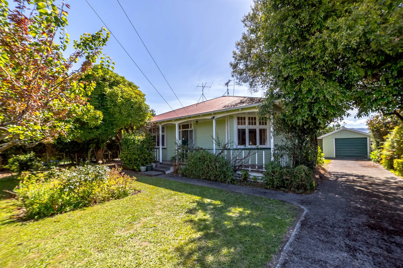 With the owners having recently moved into care, their much-loved character bungalow situated in one of Carterton's most sought-after locations is reluctantly being offered for sale. This delightful older home sits privately behind a high hedge and is set in grounds featuring a variety of lovely old established trees and shrubs. The homes hallmark bungalow features including a covered front veranda and corner bay window add greatly to its character and charm as does the imposing central entrance hallway with its high ceiling and polished timber floors that flow into the main living areas and master bedroom. The home is deceptively large and in addition to a formal lounge with small sunroom and a formal dining room, it offers the benefit of three double bedrooms, a bathroom and ensuite, a large laundry with third toilet plus a generous kitchen with space for informal dining. French doors provide the added benefit of indoor-outdoor flow from the informal dining space out onto to a second covered veranda and down into a paved courtyard and private sunny grounds at the rear. Two heat-pumps, a built-in gas fire and HRV ventilation ensure comfortable living and an alarm system provides added security. Attic storage is an extra bonus. The property is fully fenced with a concrete driveway leading to a garage and carport. Although parts of the home are in need of a little love and attention, improvements, especially those that build on the property's inherent charm and character, will future proof your investment and provide you with a home that you will enjoy and cherish. Don't let this one slip away. View now and get yourself auction ready!