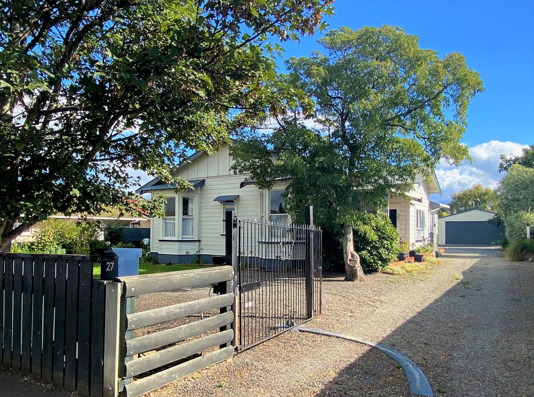 If you are looking for a fabulous character home, look no further. The current owners have taken a lovely property and added some fantastic touches, turning it into an absolute treasure. The living is spacious with an office nook, opening to the fantastic deck at the rear of the property, making this the perfect home for entertaining a large family. Heated with big free standing fire and heatpump, the house is toasty in winter and cool in summer. Three double bedrooms plus extra dressing room, with a modernized kitchen and bathroom. Excellent garage for the person who loves tinkering outside, with great work space at the back, concrete floor and power. Fully fenced for your wee ones and fur babies. An easy walk to town and schools. This is the perfect home for families, make sure you are first to view as this wont hang around long. Viewings by appointment.