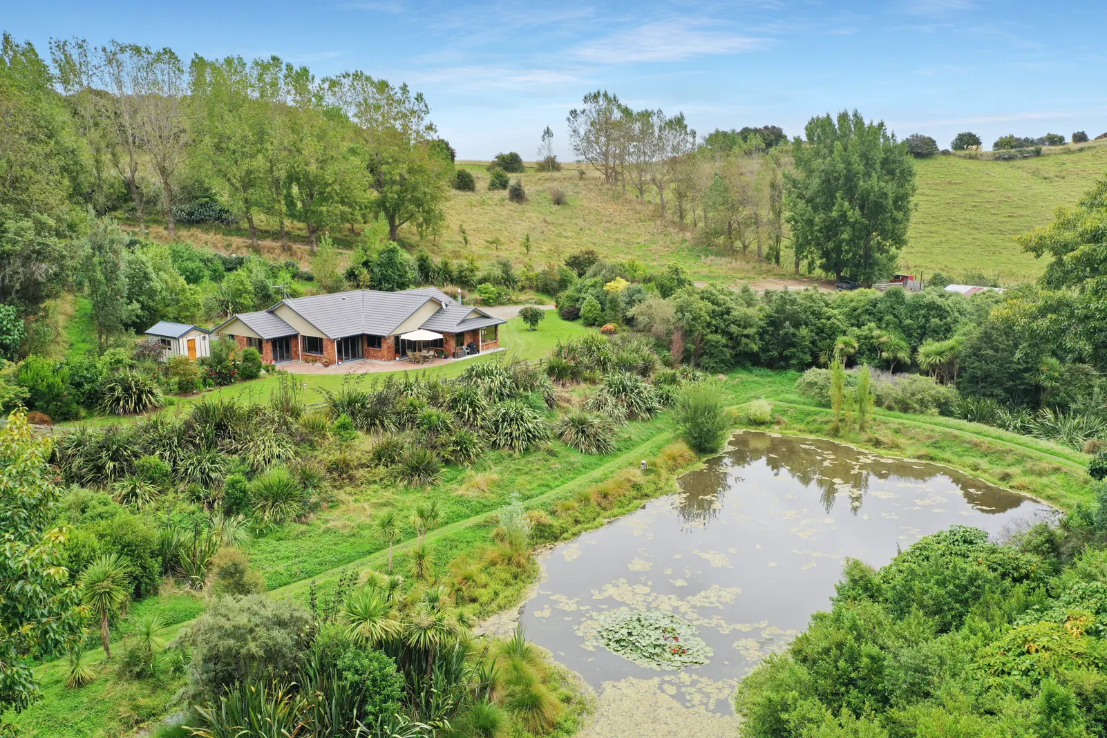 Located within a 15 minute drive to Feilding and in the Halcombe school zone. This unique property boasts a large modern homestead on a quality farm that has the ability to finish all classes of livestock. The modern homestead was carefully built by the current vendors. The house features a most attractive entrance with a leadlight glass framed door which leads you through to the kitchen/family room and separate lounge, heated by a large Metro wood burner on wetback. The Macrocarpa jolted ceilings are a true feature here. Stacker doors open out to the north and overlook the large pond which is a major feature of the homestead surrounds. The modern farm style kitchen is well set out and includes a large walk-in pantry, modern appliances and Corian bench top. The four bedrooms (one currently used as a large office), all have good storage, main with ensuite including underfloor heating. A central hallway leads to the family bathroom and separate WC. The separate laundry has internal access to the double garage and includes plenty of storage space. This home is built from low maintenance materials and is set in the most attractive grounds, featuring fruit trees and plenty of parking. The farm has a superb balance of medium hill, some easy rolling flats and some terrace-type flats with approximately 60 percent of the farm cultivatable. The property is split into 19 main paddocks with a high standard of fencing and an exceptional network of tracks throughout. Improvements include implement and hay shedding, a 2-stand wool shed, cattle yards, and sheep yards. Water for the property is supplied from the Halcombe water scheme (10 units) and gravity fed across the property.