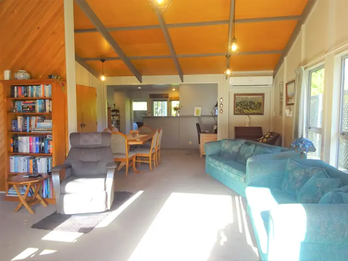 Check out this 150m2 three bedroom open-plan home. Great location if you like to live close to the beach, go for walks in the forest or just chill out on the wrap-around deck, never missing the sunshine. Large kitchen with access to the back deck for barbecues in the afternoon. Separate bathroom and toilet. Internal access from the garage, never get wet bringing in the groceries again. This home is heated in the winter by a wood burner with a wet back and cooled in the summer by a heat pump. There is room at the front to park the camper or caravan on this 870m2 section. This fantastic property is priced to sell.