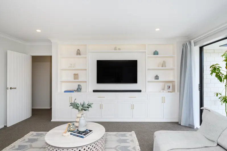Welcome home to this near-new, stunning property with three bedrooms, spacious open plan living and luxurious bathrooms. Located super close to town with fabulous entertaining options, this immaculately presented home will capture your heart from the moment you arrive. The carefully designed kitchen with lovely tiled features, overlooks the open plan living area, while the breakfast bar acts as the perfect place for hosting a smaller number of guests. A large entertainment unit has been specially handcrafted for the home to include fantastic storage and display options. Step outside through sliding ranch-slider doors to a private patio, showcasing well-manicured gardens, a pizza oven and room for young children and pets to play. Back inside, the master bedroom enjoys abundant storage, external access and an elegant ensuite, complimented by an oversized tiled shower and a backlit LED mirror. The matching family bathroom, off the hallway, enjoys luxury tiles and fittings with a separate toilet. The other two bedrooms feature a wardrobe each, and there is storage for linen in the hallway. The combination of double glazing, a powerful heat pump and a smart vent system make this home a haven to come home to in both summer and winter. Completing the package is a double internal access garage and ample off-street parking for additional vehicles and trailers. Come and fall in love!