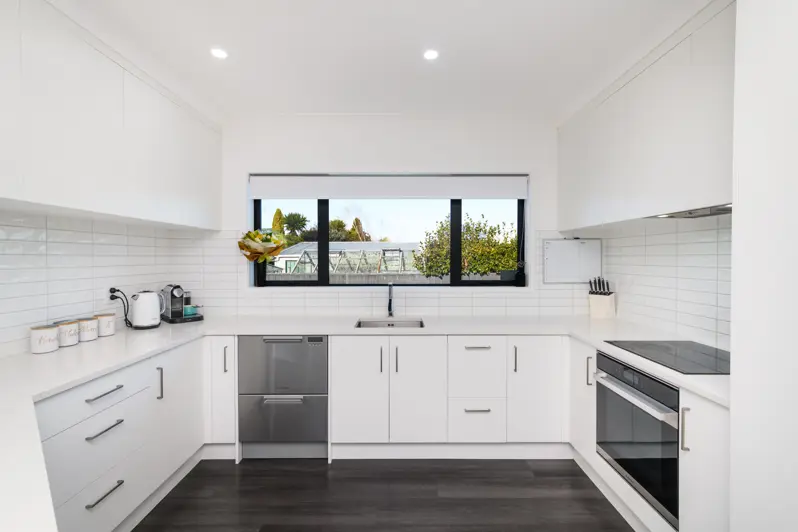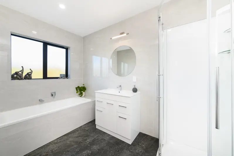 Welcome home to this spacious, well-presented property enjoying three generous bedrooms, striking modern features and a higher-than-normal stud. Built in 2022 this home incorporates everything you could want in a near-new home. Upon entry you are greeted by a fabulous entrance flowing through to open plan living where you will be captivated by wide open spaces, lots of natural light and neutral decor. The sleek kitchen with a tiled splash back and modern cooking appliances is sure to impress. Step outside through either set of stacking doors to one of two carefully positioned patios; perfect for entertaining, no matter the weather. Low maintenance gardens, some fencing and a garden shed, complete the package. Back inside, the master bedroom enjoys a walk-in-wardrobe adjacent to the luxury ensuite. The matching family bathroom, also off the hallway, enjoys a family bath plus luxury tiles and fittings. The combination of two powerful heatpumps and double-glazing means controlling the temperature of the home is a breeze. You will feel safe and secure with neighbours close-by and an internal access double garage. Come and be impressed!