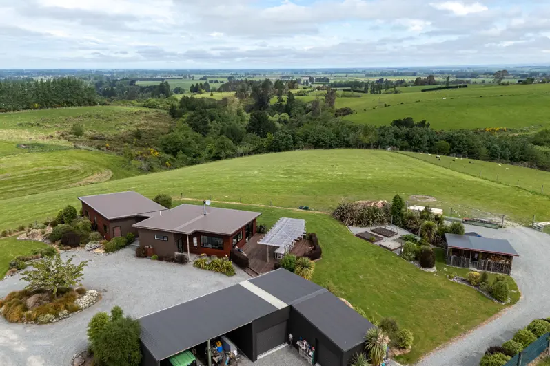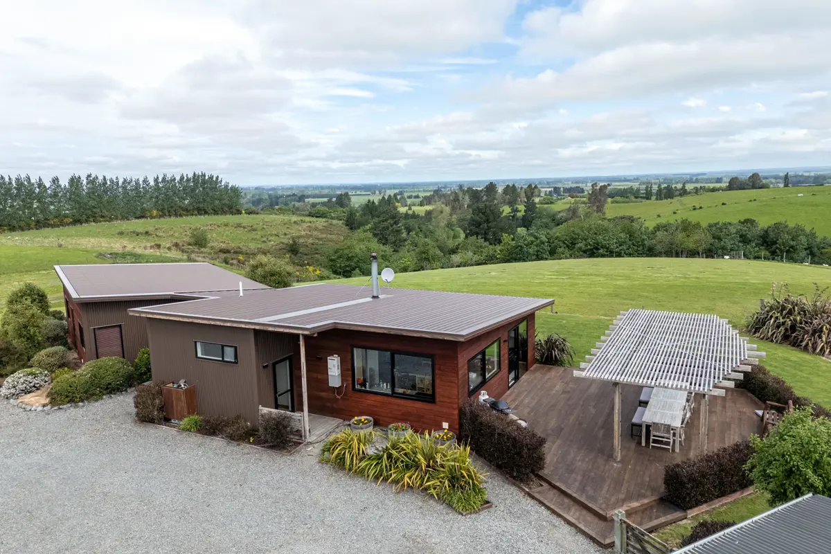 This architecturally designed well-appointed home, set on just over 3ha up on The Downs of Geraldine, presents a rare opportunity to live in a contemporary build, with established low maintenance landscaping and stunning views, that perfectly balances form and function, letting you live a rural lifestyle with modern comforts all under a 5 minute drive from the village. The home features a light and bright open plan kitchen/dining/living area designed for family living with excellent indoor-outdoor flow and the generous kitchen includes a butlers pantry. The second living space or snug is connected via barn sliders door, enabling flexibility if entertaining or wanting separation of spaces. The home is very energy efficient due to its orientation and strategic glazing to maximize passive heat from the polished concrete floors (piped for under floor heating) in the main living and high use areas, thermally broken double glazing, log burner in the lounge and ducted heat pump in the bedroom areas. There are two single bedrooms, and two doubles including the master with large walk in wardrobe and stunning tiled ensuite with feature bath. A tiled second bathroom, separate laundry and a practical 'mud entrance' with additional storage space complete the interior. Outside you will find a large concrete floor four bay shed (two bays enclosed) with workshop, wood shed with storage, loads of off street parking, well fenced paddocks suitable for a range of stock, cattle yards all supported by 1.5 Units of Te Moana water. If more land is desired, there is the potential of acquiring an adjoining dry 2ha block on a separate title to the west. This lifestyle property really does have it all - don't delay, call me today!