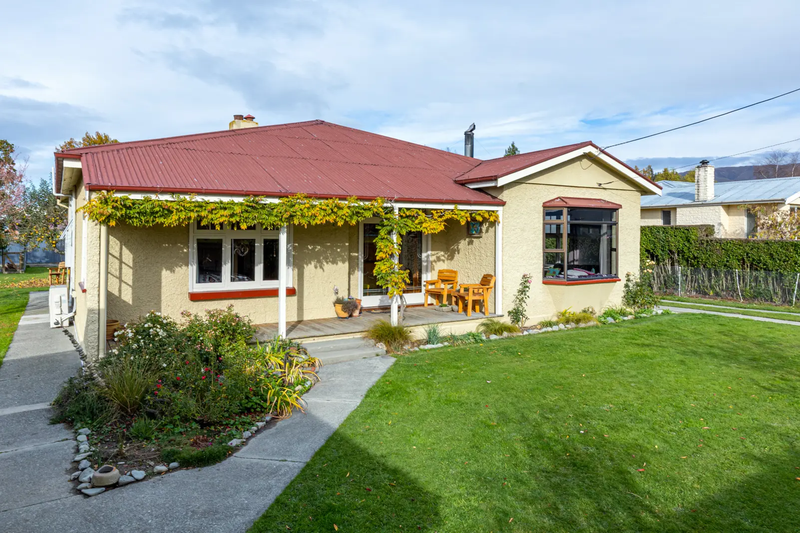 A character filled home which has been updated and renovated for modern living. North facing with expansive views of the mountains and all day sun. Privately located on a no exit street with semi-rural surroundings. With three double bedrooms, a large lounge along with features of times past it will make a great family home or one for those looking for a quieter way of life. The house was completely replumbed and gas hot water installed when the bathroom was recently renovated. The bathroom features the original wall molding and new exposed copper piping. A large freestanding fire works alongside a heat transfer system and heat pump to keep you warm. The generous laundry area, containing a second toilet provides convenient indoor/outdoor access. An added bonus is the hobbies room located undercover alongside the woodshed at the back of the home. There are two single garages, one large enough to store your motorhome or caravan. The easy care, fully fenced grounds include vegetable gardens, fruit trees, hen house, green house and potting area. Within walking distance to the village of Fairlie this property has so much to offer.