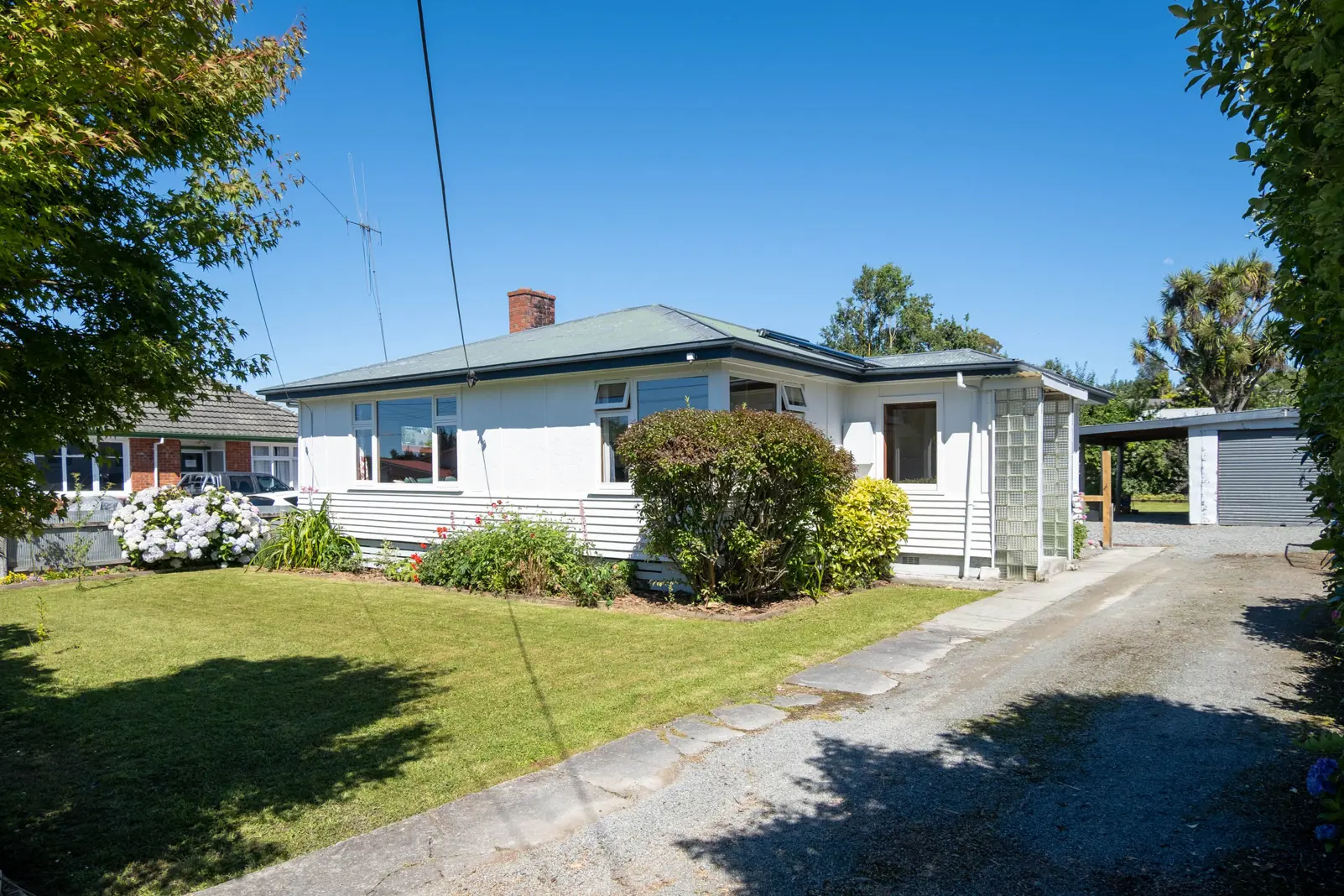 Opposite Geraldine's Primary School on a flat section this property makes a great first home, family home, downsizing option, or rental investment. It's had a full exterior repaint, is double glazed, well insulated, has two modern heat pumps, an HRV system, and even has solar hot water! The open plan kitchen/dining/living area has easy access to the separate laundry, separate shower room and toilet, and there is a generous separate lounge, two double bedrooms, one single bedroom, and a bathroom with a vanity and bath. The private yet open backyard has fruit trees, an outside bath, a single garage with car port and additional storage sheds. With the potential to add further value, this is a great opportunity for astute buyers!