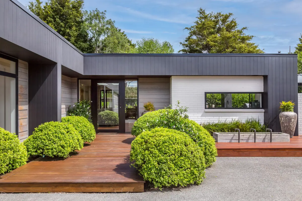 Located in the heart of Greytown lies this exquisite, architecturally designed, and Balinese-inspired property that provides its new owners with unrivalled privacy and security, set behind a cedar-clad, automated security gate. Once inside, you are treated to your own private, luxury, resort-style oasis. This contemporary home immediately impresses with its sleek exterior of white brick, cedar, and black axon panelling and expanse of glass wall and door systems that extend to multiple skylights that infuse the home with light and warmth. The beautifully landscaped garden, with its abundance of water features, expansive Kwila decking, near wrap-around boardwalks, and subtle outside lighting, conveys peace and tranquillity while only a stone's throw from the vibrancy of Greytown. On walking through the extra wide glass front door, you are greeted by a spacious, open-concept living, kitchen, and dining room with the added bonus of an admin alcove concealed behind a barn-style door. The kitchen and dining space flow seamlessly outside to a private covered alfresco and entertaining area. This home boasts quality features, including a spectacular double-sided frameless Escea gas fireplace that separates the two living areas, striking pendant lighting, and beautifully crafted spotted gum flooring. The kitchen, with engineered stone countertops, oak and exposed plywood accents, also features a 90cm oven and induction hob, integrated dish drawers, and a breakfast bar. The master suite flows seamlessly outside onto the boardwalk via glass sliders and incorporates a walk-in wardrobe and tiled ensuite, complete with a bespoke vanity, natural stone basin, and underfloor heating. The guest wing includes two generous double bedrooms, a separate toilet, and a Balinese-inspired bathroom with vistas to the garden that can be enjoyed while luxuriating in the free-standing bathtub. A double, internal-access lined and carpeted garage completes this stunning property.