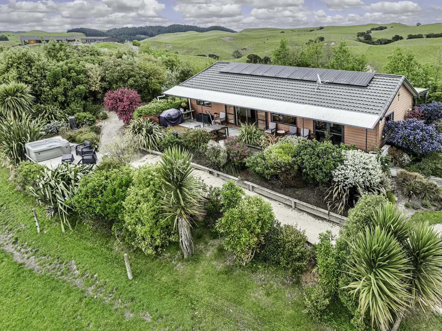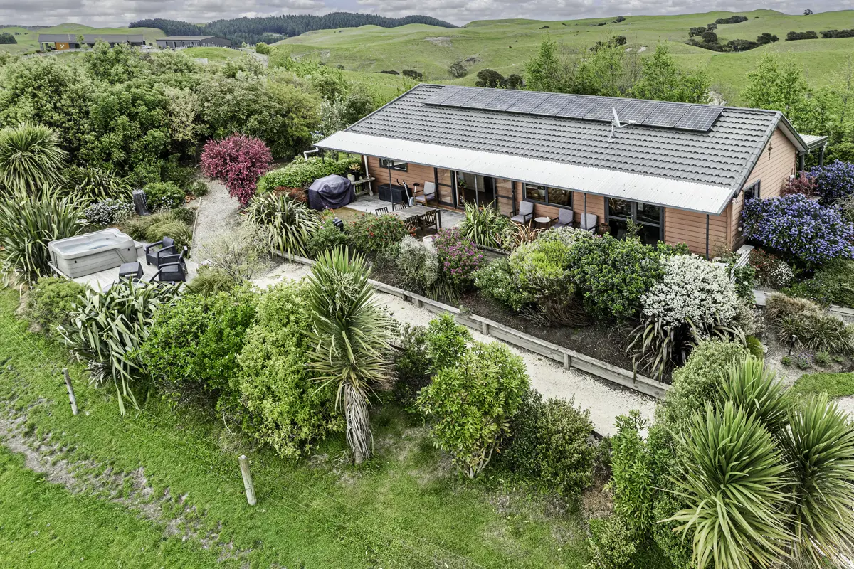 This beautiful 3 bedroom, 112sqm home on 1.58 hectares of gently sloping land offers its next owners a quaint slice of peaceful paradise. Just 12 kilometers up Taihape Road this lifestyle gem provides all that you might need to enjoy life among the established native surrounds and lovely valley views. The home features an open plan kitchen, dining and lounge. A hallway provides separation from the 3 bedrooms, bathroom and ensuite. A carport with direct access to the home provides convenience, while 2 double glass doors lead you out to the established grounds and stunning views. A "viewing deck" with spa pool gives holiday vibes while the double garage with workshop, loading ramp, yards and kennels means all your lifestyle needs should be covered. Not stopping there, a full solar system with Tesla batteries is in place offsetting your power costs throughout the year. The land slopes gently away from the home offering up those classic rural valley views while established native plantings and pathways provide a place to wander to your favourite spot to take in the scenery, plant veggies or just relax and enjoy the lifestyle dream! hawkesbaylifestyle.com
