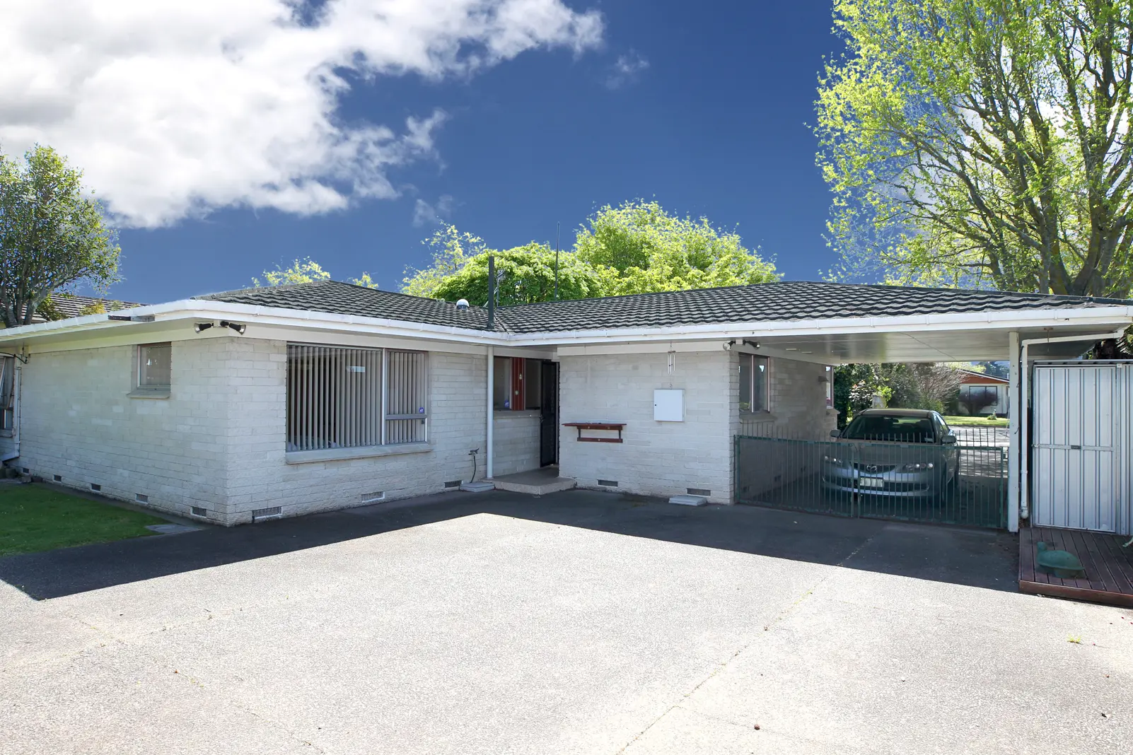 Built in the 1970's, this home is solid with a brick exterior and decramastic tile roof. The 150sqm floor area is bigger than most and it sits on a secure 690sqm section. Much of this home is original but it has been well maintained and it is just waiting for your touch to modernise and make it yours! The three bedrooms are all large double rooms with double wardrobe space and the kitchen and dining room look out to the road. The lounge is large and spacious, and also looks out to the road through a huge picture window. Heating is via a gas fire which is on bottled gas and there is an HRV system to keep your home warm and dry. The toilet is separate which is a real plus for a family, and the bathroom was upgraded 6 years ago with a new shower, bath and vanity. There's also under cover parking for three vehicles with one garage and two carports plus loads more off road parking.