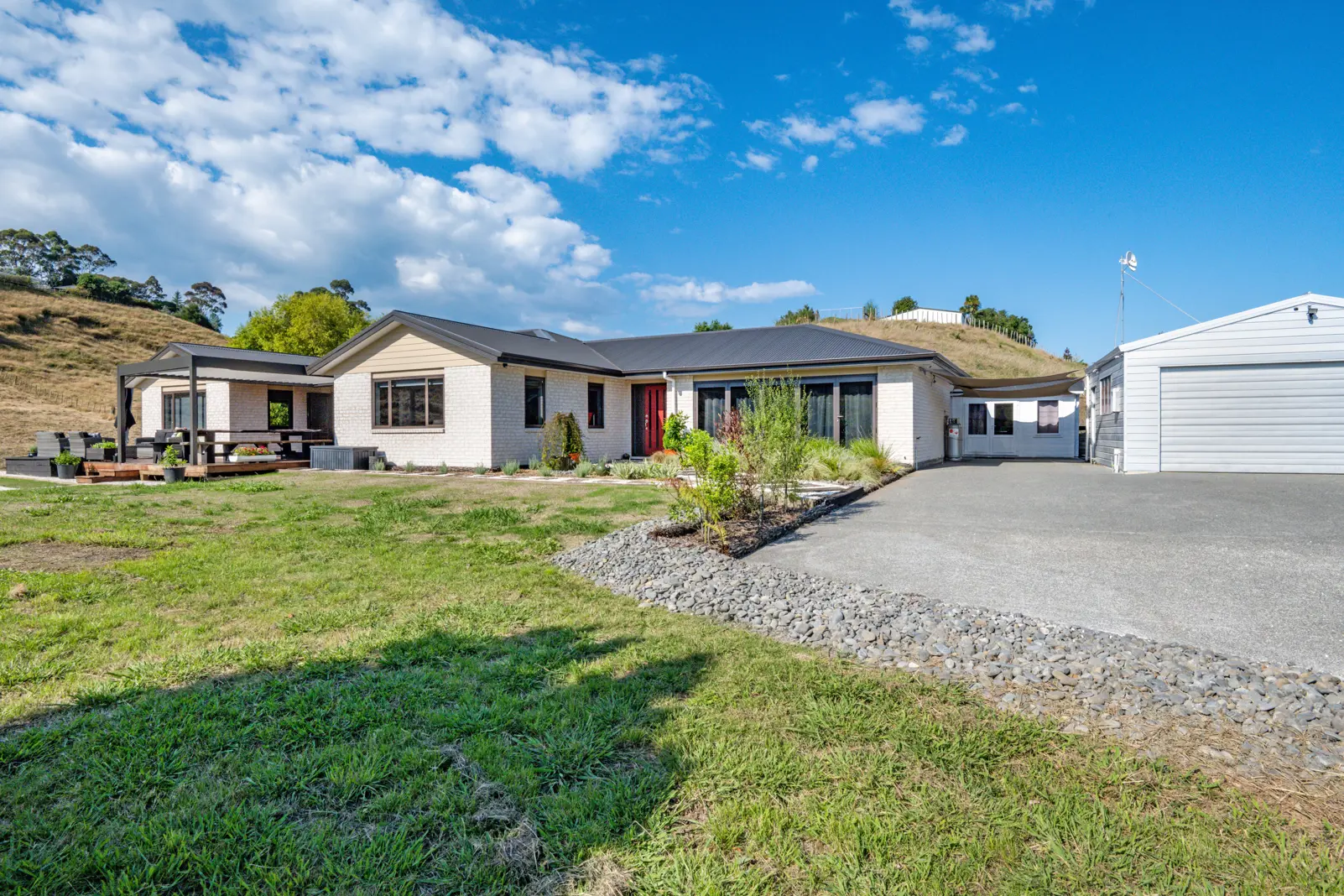 LIFESTYLE: Come home to the lifestyle you deserve. This stunning Latitude-built home is just two years young and sits beautifully in an elevated peaceful position, capturing the lovely valley views. Designed especially with family and entertaining in mind, the gorgeous gourmet kitchen with enormous island flows so well through wide bi-folds to the extensive auto-louvre covered deck, long enough to accommodate those large family gatherings year-round. The living areas are spacious, with casual open plan lounge and dining opening to the sunny deck and separate formal lounge providing a tranquil retreat. A huge multi-purpose office/rumpus room is an added bonus, the four bedrooms are all generously proportioned with the master boasting walk-in robe and ensuite plus deck access. A separate double garage with motorhome parking pad alongside awaits at the end of the fully sealed driveway. A cute outside room would make an ideal playhouse, hobby room or great storage. Maturing specimen trees shield the home from the road. Landscaped pathways directly surround the home with new lawn establishing and room to expand the grounds further if desired. And of course, there is grazing for the lifestyle pets too. This is a truly desirable Poraiti lifestyle, only made available by new opportunities presenting themselves to the vendors. You won't want to miss this. Tender closes 4.00pm, Thursday 24th March 2022 (unless sold prior) hawkesbaylifestyle.com