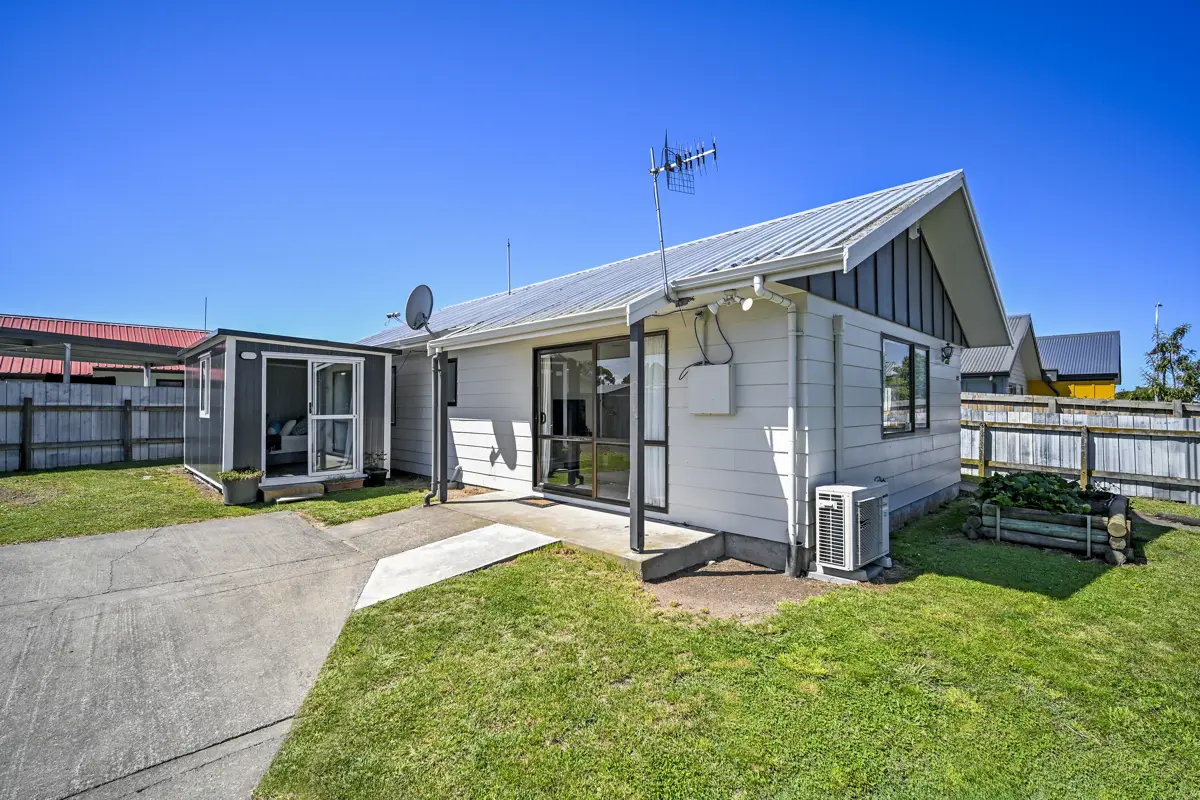 This very tidy two bedroom property with its own driveway and easy-care gardens is perfect for those looking for a home that won't have the bank in a flap or an investor looking for an easy option. The property has open-plan living with modern neutral decor and a tidy kitchen and bathroom. Insulation, DVS and a heat pump keep the climate in check and the additional powered cabin offers great versatility if you need an extra bedroom or office space, so if you're looking for a tidy home at a very affordable price, call us to view today.