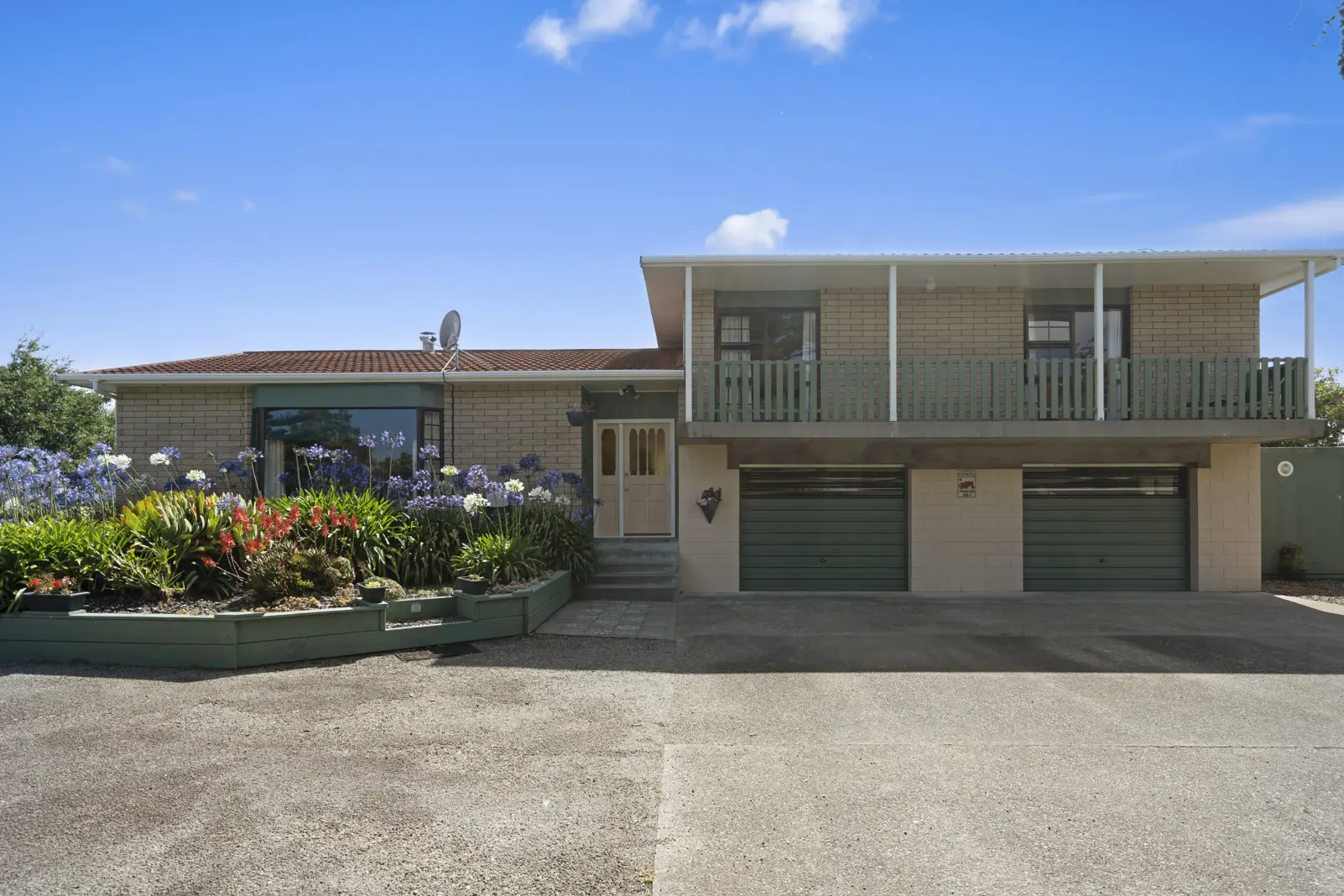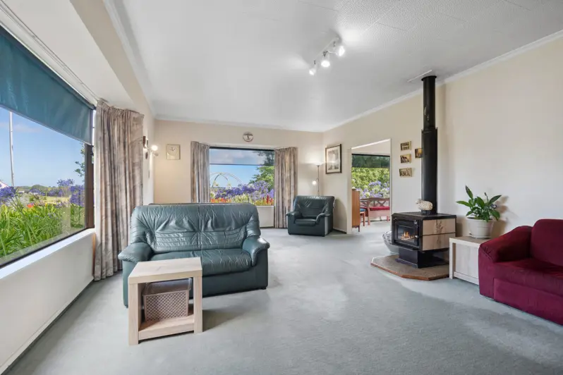 With views forever, a move to the country doesn't get much better than this. A spacious brick split-level mid-80s home offers three double bedrooms, two with balcony access, and a separate office or hobby room. The generous living space features a wood burner and views over the garden. A family bathroom and a laundry with an additional shower and toilet complement the home. A north-facing patio off the dining room overlooks the surrounding farmland. The property also includes a double garage or garage/workshop space, a petanque piste for family gatherings, a tractor shed, a trailer shed for storage, and a sheep pen. Quiet yet within easy reach of schools, parks, and shopping centers, it offers the best of both worlds! .