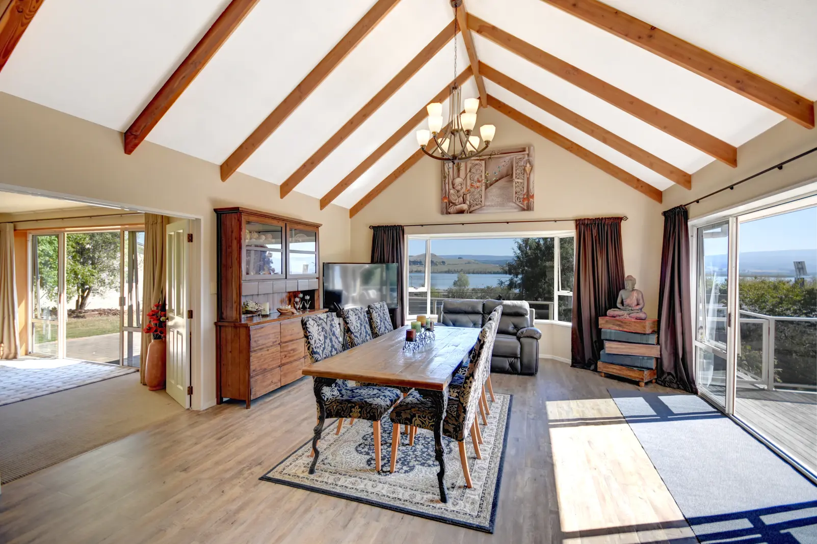 Cost to re-build this home in todays current climate would be over $1.2mil and that does not include the land! This property has a 330 m2 home situated on an elevated 1/2-acre section directly across from the lake therefore enjoying uninterrupted vistas of the water and the hills beyond. The stunning new kitchen will appeal to the chef in the house with a large induction hob, double ovens, large work surfaces, central island, and amazing views through the greenhouse window. The size of the living areas in this home must be seen to be believed as you could entertain a small army in the open plan kitchen/dining/living room without having to move through the French doors into the separate lounge. This lounge in-turn opens out to a tiled patio and garden area that also enjoys lake views. A wide hallway leads to the first of 3 double bedrooms and the main bathroom with under floor heating, vanity and spa bath set into a corner window. Next to this are a shower room, separate toilet, and large laundry. The Master bedroom also has lake views, double glazing, wall to wall wardrobes, en-suite bathroom and opens out onto the large deck. An internal access stairway leads down to the huge basement that provides garaging for up to 4 vehicles, wood storage, workshop facilities and a separate room that could be used as a gym or office and would be ideal for someone who may wish to work from home. The 2049 m2 of mature grounds have been extensively planted in specimen trees providing a picturesque setting for this property opposite Lake Waihola, a popular recreational lake which is just a 30 minute from the city to the north or Balclutha to the south. Short possession available. Viewing by appointment or during scheduled Open Homes.