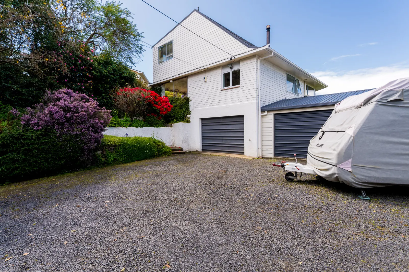Located at the end of Dorset Street, off Mornington Road. A private drive opens up to reveal a surprising property with garaging fit for the ultimate car enthusiast, further off-street parking and a home perfectly suited for those with growing children. With 2 separate double garages and a triple tandem basement garage with workshop space, there really is room for all the toys here, privately located out of public sight. The large family home is built over 2 levels, with low maintenance Palliside cladding on the upper level. Entry at the ground level takes you to the open plan kitchen dining area with lovely wooden floors. The kitchen has a very functional breakfast bar and great views. This opens via sliders to the patio area. Off here is a laundry room and the seperate toilet. The separate living area has both a toasty Yunca fireplace and heatpump and has stunning views right out to sea. Further on this level are 3 bedrooms (or 2 plus office) and the family bathroom with both shower and bath. Head upstairs and this is where the teenagers will love! A large bedroom, another living area plus a large 5th bedroom or rumpus room again with those fantastic views. There is great storage throughout this home, that feels warm spacious and functional for a busy family. There is a large patio area at the front of the home and a separate yard where the kids can enjoy the views while bouncing on the trampoline. This unique property is a must see for those that require great garaging options, plus room for the family. Contact Shoz to arrange a viewing 0275 143 218.
