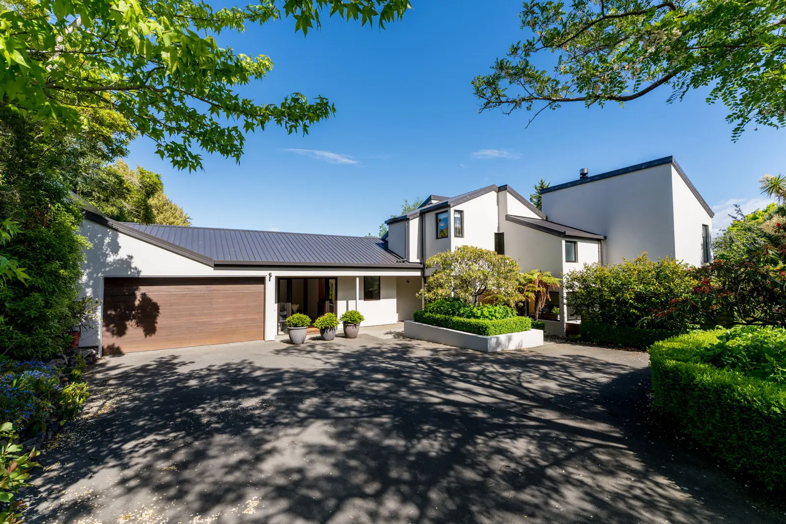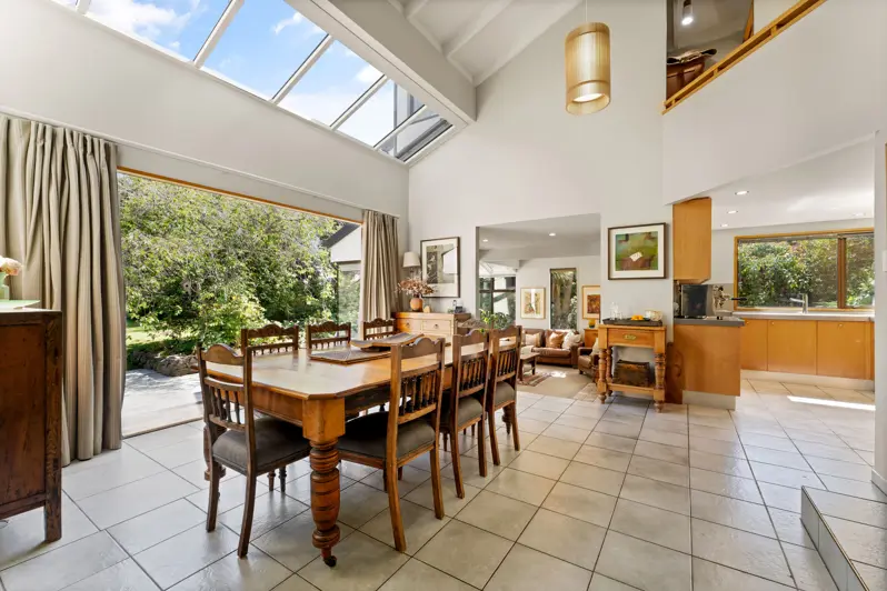 Very rarely does a property of this quality and design become available and even more rarely a property of this size and future potential. Set on more than 2400sqm of stunning gardens over two titles, this beautiful property needs to be viewed to fully appreciate the enticing split levels and angles that the Parker Warburton architects created to provide a unique home that will undoubtedly impress. The heart of the home is the timeless kitchen and central dining area, with the choice of stepping down to the two large lounges positioned on either side of the dining area. The options are yours as to how to enjoy these exceptional bright and warm sunny spaces. Both have fireplaces and one with a heat pump. The dining area has large bifold doors leading to the sundrenched patio, outdoor living space and garden. The bedrooms and bathrooms are split across two wings, with two bedrooms, bathroom, separate toilet and large laundry on one side of the home. A further two bedrooms including the master and bathroom in the other wing. Storage is maximized with the architects making use of all possible spaces. This home also has two further rooms with their own separate access, perfect for a home office and studio. The double garage has access to the rear of the property and there is also room for considerable off-street parking. This family home is double glazed, recently re-roofed and re-clad and has been loved and maintained to offer the high standard of living desired in this very popular location. There is so much to see, so be sure to come along to an open home or get in contact for a private viewing.