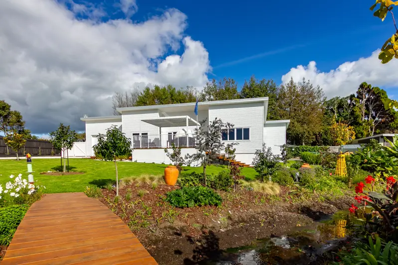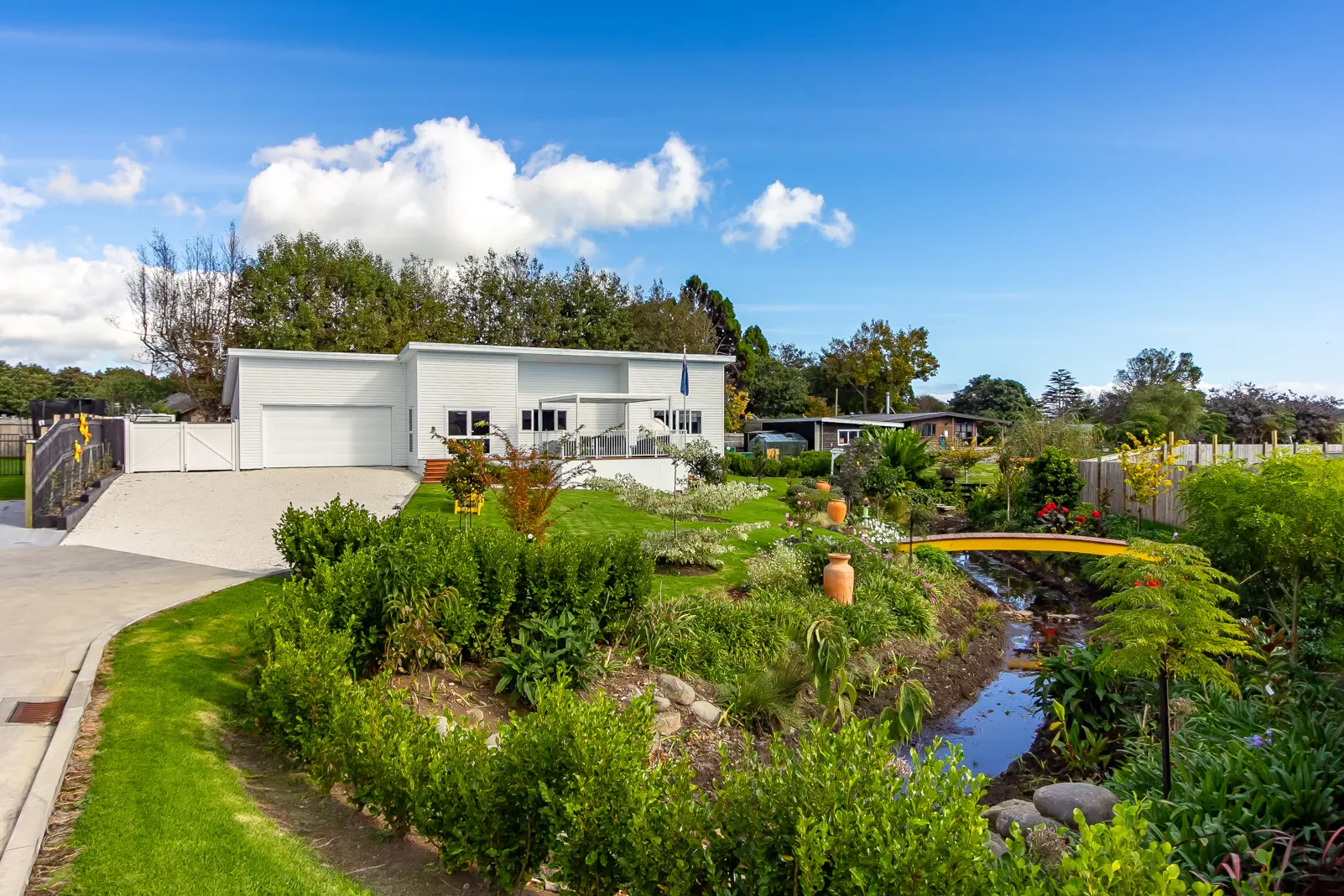This gorgeous, near new, low maintenance three bedroom home is nestled down a right of way in the Aratapu Subdivision, overlooking a beautiful established landscaped garden, complete with a bridge over your own creek! The cleverly thought through layout maximises entertaining with ease. The kitchen, with scullery, has double sliding windows linking it to the outside entertainment/BBQ decking area. Off the kitchen is a dining/family area which leads out to the deck. At the other end of the house is a separate lounge. Double, internal access garage with higher than normal 2.4 m garage door, plus a large separate workshop/storage area and laundry. To the side of the garage is a large parking space which will easily accommodate a motorhome. Added to all of this is a glasshouse and raised vege garden beds, passionfruit and grapevines, berries, and even a banana tree. The hard work has been done and you get to just move in and enjoy. Call now!