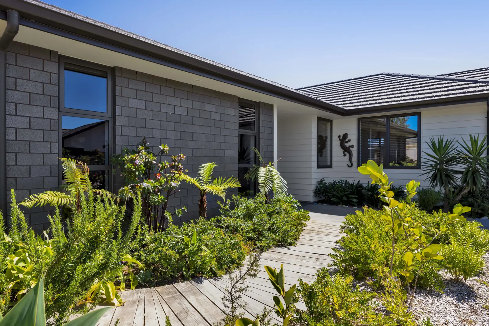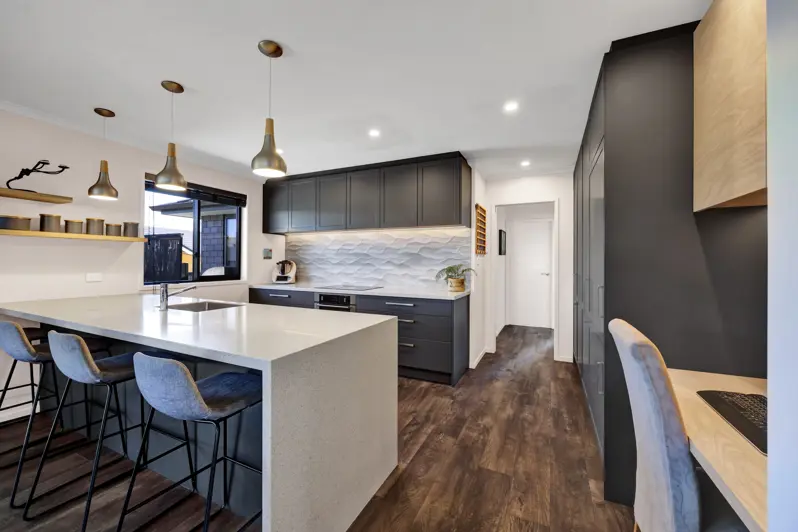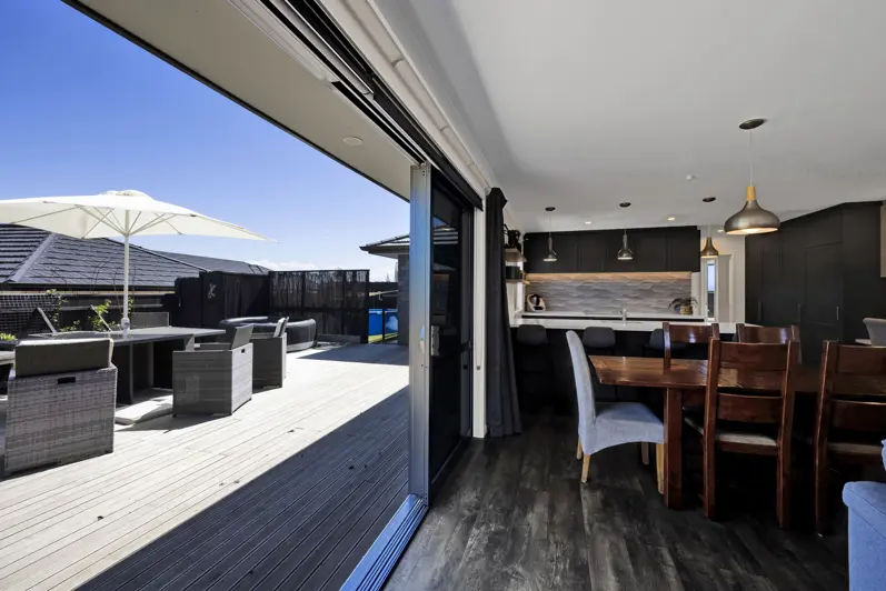 This gorgeous 3 year old, low maintenance, 5 bedroom home is fully fenced and tucked down the end of a quiet right of way. There is a separate lounge area, and the open-plan family, kitchen and dining spaces open out on to a large sun-drenched entertainers deck, featuring a discreet outdoor shower. Just off the deck is a separately fenced (with gate) synthetic turf area currently being used for a temporary summer pool. It would also make a fabulous kids outdoor play area or a dog run. The beautiful kitchen is by Vogue, as is the laundry which is located in the double garage. A separate large workshop featuring two fluorescent strip lights and a 32-amp power point, can be accessed via the garage or through its own auto garage door. Lots of extra features including: central heating/cooling, hallway sensor lights, shower domes, outdoor power plugs, Cat 6 data cables to most rooms, study nook, plenty of internal storage and off-street parking. Don't miss this fantastic opportunity to secure your slice of Bell Block paradise - call now!