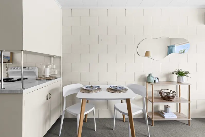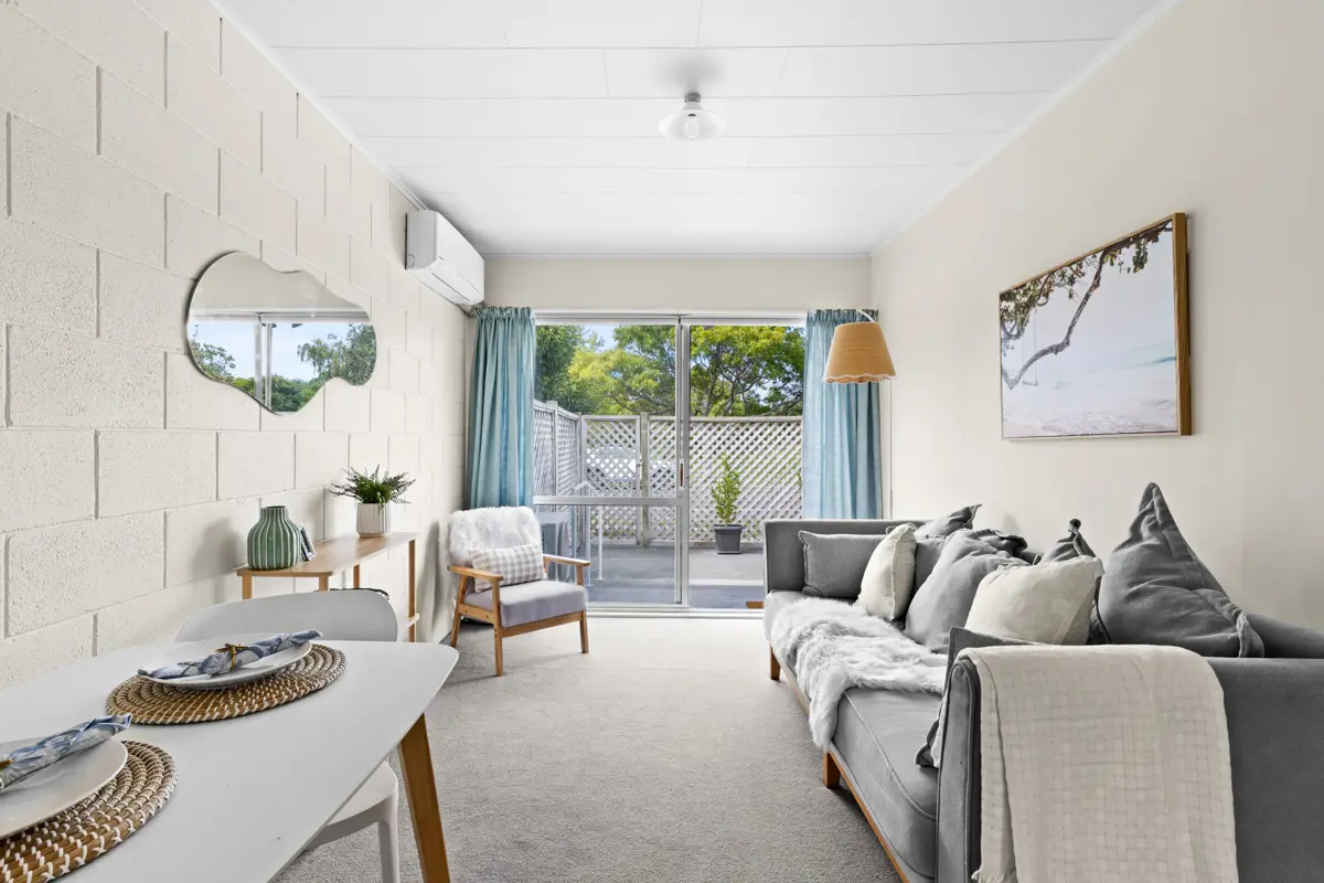 Looking for your first home or a smart investment? This charming one bedroom unit could be just the ticket! Bathed in warm golden sunlight both morning and evening, this home feels bright, uplifting, and welcoming from the moment you step inside. Plus, with a peaceful greenbelt reserve just across the road, you’ll love the leafy, calming outlook that adds a touch of nature to your everyday. Inside, calming colours create a soothing atmosphere that flows effortlessly throughout the home. The soft tones and natural light combine to offer a relaxed vibe where you can truly unwind. Whether you’re enjoying your private outdoor patio or soaking in the quiet comfort of the interior, every detail is designed to help you feel at ease. There’s great storage throughout - a built-in wardrobe in the bedroom, plus an extra hall cupboard for all your bits and bobs. The kitchen is well-appointed with plenty of storage and flows easily into the compact, welcoming living and dining area. A sliding door opens to a private, serene patio, a perfect spot to sip your morning coffee while basking in the sunrise or unwind in the evening glow after a busy day. It’s an ideal space for a moment of calm or entertaining friends and family. Need more room? The integral garage is super handy, offering laundry space and potential as a quiet home office. The bathroom features a large shower and modern vanity, while the good sized bedroom overlooks the private courtyard with stylish window treatments adding to the cosy feel. Plus, with air conditioning, you’ll be cool and comfy year-round. Tucked away in a prime location—close to schools, shops, doctors, and the Hawke’s Bay cycleways—you’ve got everything you need right at your doorstep. This wee gem offers so much more than meets the eye. Call us today for more info or swing by the open home and see it for yourself!