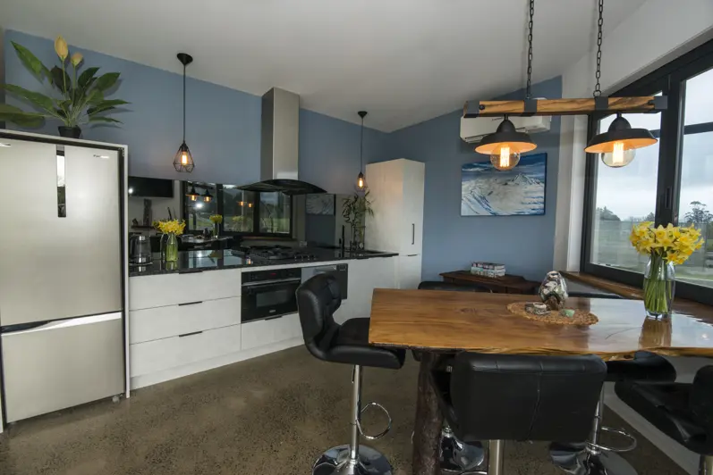 If you dream of finding your retreat on a lifestyle property close to town, we have it for you right here in Ohakune. The home is built from a mixture of Cedar and Schist with polished concrete flooring throughout, is situated perfectly for all day sun and features open plan kitchen and living with huge stacker doors opening out to the sunny north facing deck complete with a spa pool. The bedroom has built in Cedar bunks, a spacious bathroom, laundry cupboard and great storage space. You also have a pull-down super king bed well hidden away behind a feature Cedar wall in the lounge. Insulated top to bottom with double glazing plus a woodburner and heat pump, there's no chance of getting cold in the winter months. The separate large garage includes a good size workshop and a unit plus ample storage for all the toys big and small. The 1.5 ha (more or less) of land has endless opportunities and loads of potential. Fully fenced with two ponds on the property that both draw the ducks in along with other birdlife. Both nicely landscaped in natives and surrounded in small rocks with one pond having its own jetty. A chicken coop/small orchard, vege garden and a child's dream playground complete this lifestyle property nicely. So close to town but certainly has the rural feel. Wake up every morning to the picturesque view of Mount Ruapehu staring back at you. A standout choice in today's market, a place to entertain and a place you will love coming home to. This property is one of a kind, you won't find anything else like it in the area. Call the team today to book your viewing!