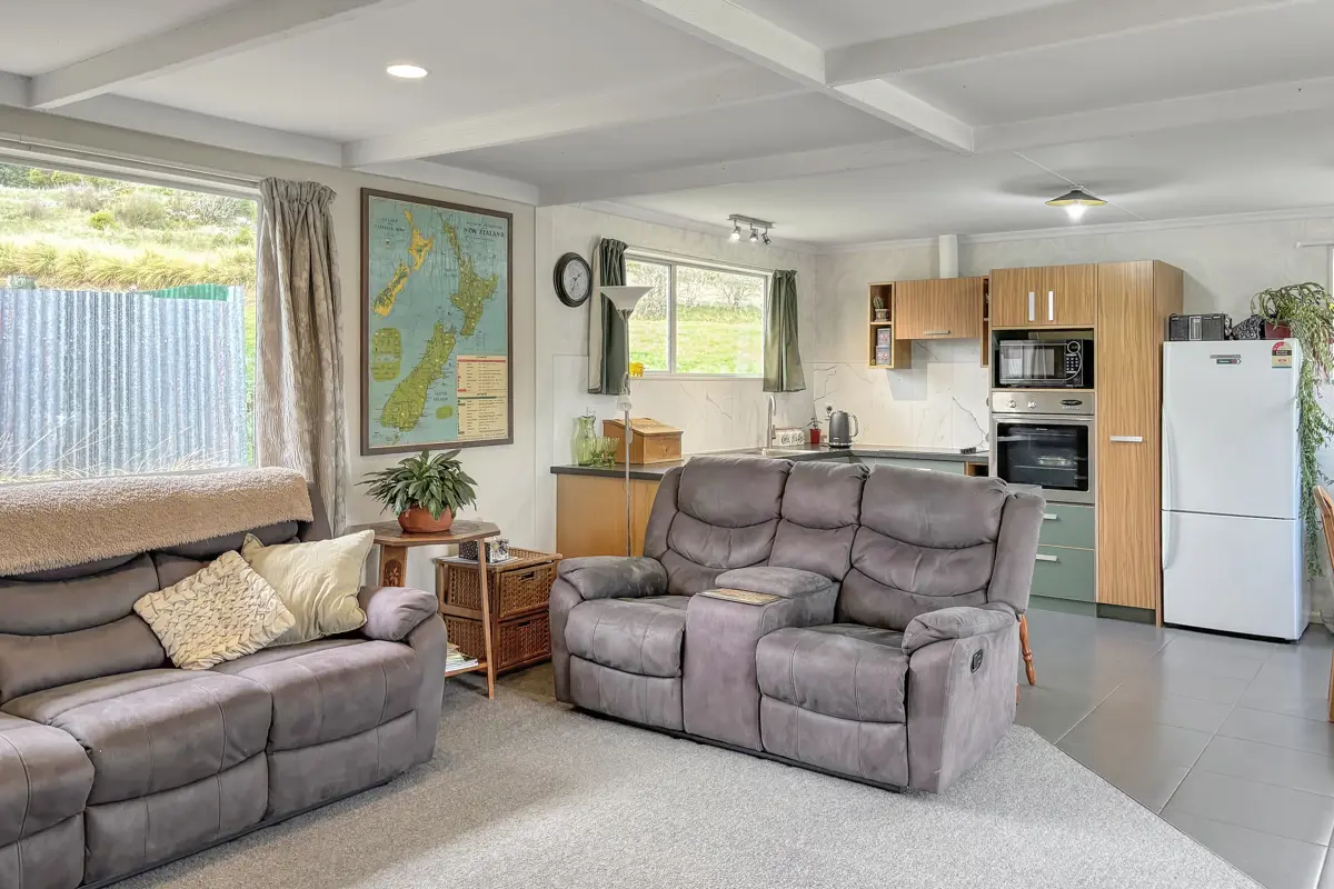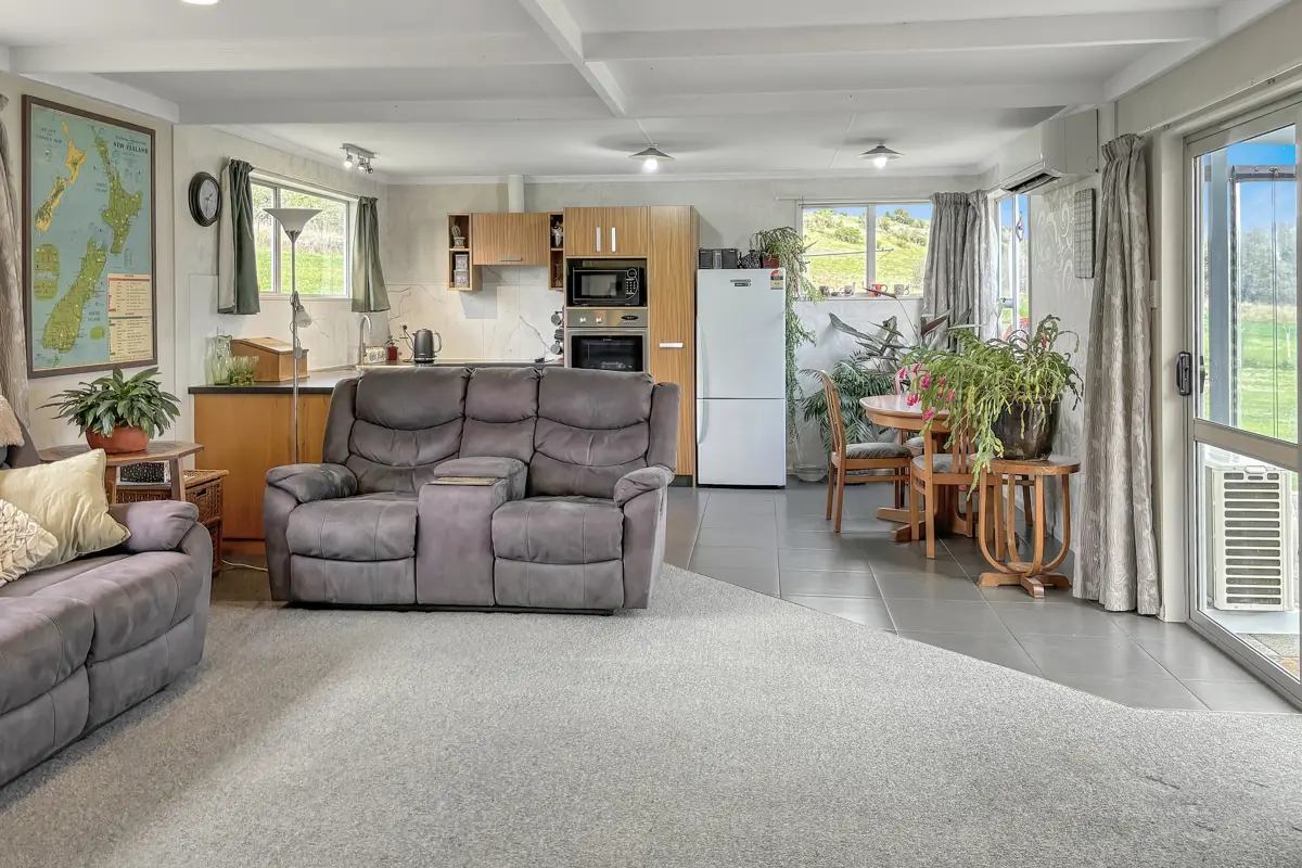 Situated 10 minutes south of Oamaru is this tidy permanent material 3 bedroom home with a separate double garage on 3139m2 section (subject to completion of title adjustment). An additional 3,000m2 neighbouring lease block is also available. Step inside the home to find a practical and comfortable layout that opens up to a covered patio area. Two of the bedrooms are double glazed and the home is heated via a woodburner, heat pump and a heat transfer with ceiling and underfloor insulation. Modern kitchen with wall oven, cooktop, rangehood, breakfast bar and dishwasher. Bathroom with shower, vanity and toilet and a spacious laundry with lots of storage. Make this home your own, call today.