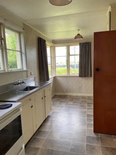 On offer is a two bedroom solid looking home in need of some renovation work to bring it up to a better standard so is being sold 'as is where is'. Located close to the north end shops on a flat section with a fenced back yard, this property would suit those wanting to start on the property ladder who are not afraid of rolling up their sleeves and putting in some hard yards in order to reap the benefits. The kitchen and dining area is original and open plan with a separate living room at the other end of the house boasting a heatpump. There is a great lockable double garage for good storage. This property has been tenanted for several years and is now vacant so settlement can be immediate. Bring your paint brush and your vision and talk to us today about an offer. The absentee vendor is looking to be sold by Christmas. Buyer enquiries $269,000+