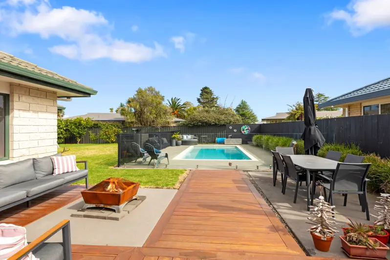 Tucked away in the quiet Ocean Downs precinct, this stunning brick and tile home combines comfort, style, and lifestyle in one perfect package. If you've been searching for a dream backyard paired with a home that truly delivers, your search ends here. Spanning 160m2, the home offers three generous bedrooms, two bathrooms, and a spacious double garage with internal access plus off-street parking - plenty of room for cars, toys, and more. At the heart of the home, the redesigned kitchen with breakfast bar seating makes the perfect hub for family life. Flowing seamlessly into the dining area and out to the sun-soaked deck, this is a space designed for effortless entertaining. Step outside and enjoy your own private retreat. The north-west facing backyard is both sheltered and secluded, featuring a large deck and a heated pool - an oasis of fun for kids and relaxation for adults alike. Future-proofing is already taken care of, with full building consent secured and paid for to extend the home's footprint, giving you options to upsize with ease. Opportunities like this are rare in Ocean Downs - act quickly to secure it.