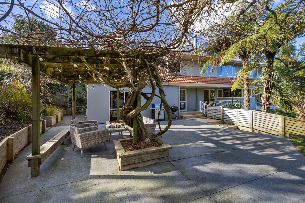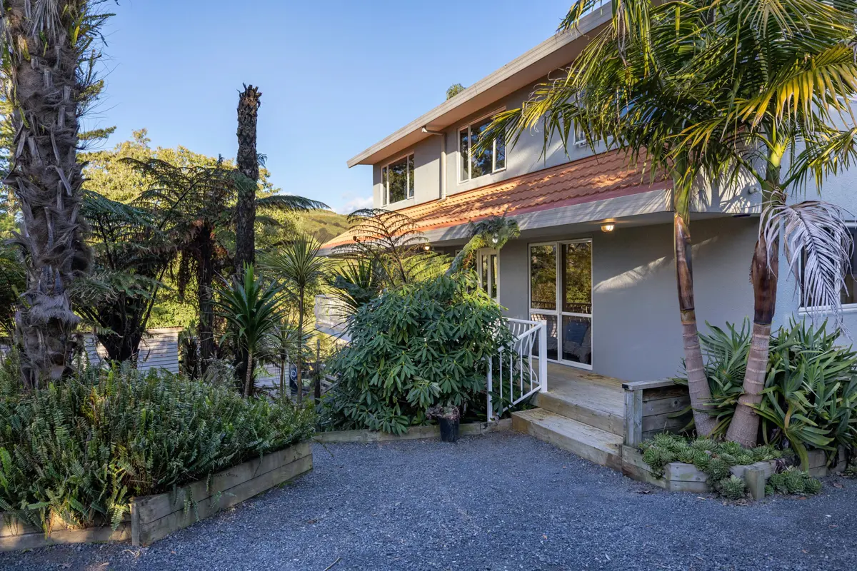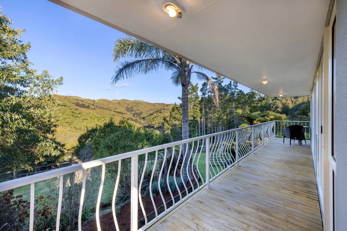 Mornings start here with the aerial circus of stroppy Tui, swooping Kereru and maybe even a wild deer sneaking around over the valley. Everything is here to make your dreams come true. The 5974m2 sloping section is fully fenced for animals, features an electric gate for easy access, low maintenance gardens, a woodlot for years of firewood and to top it all off, a few food gardens and a well-appointed chook hotel. This elevated, spacious home spans 3 levels, offering 5 bedrooms and 3 bathrooms with one bedroom and its own bathroom well separate on the bottom level, complete with its own car space – overall the home is perfect for large or extended families, or for running an Airbnb to generate a wee bit of additional income. Well maintained and nestled among mature trees, the house feels private and serene. Here lies an opportunity to reshape your lifestyle: expand the food gardens and embrace self-sufficiency or simply relax and soak up the peace and quiet — because solitude is something this property has in abundance. Here, life can be shaped to your rhythm. Grow more food and edge closer to self-sufficiency or let the gardens rest and simply enjoy the stillness. Whether you seek connection with nature, room for family, or the quiet solitude of your own sanctuary, this property offers all in abundance.