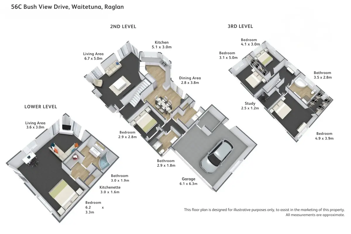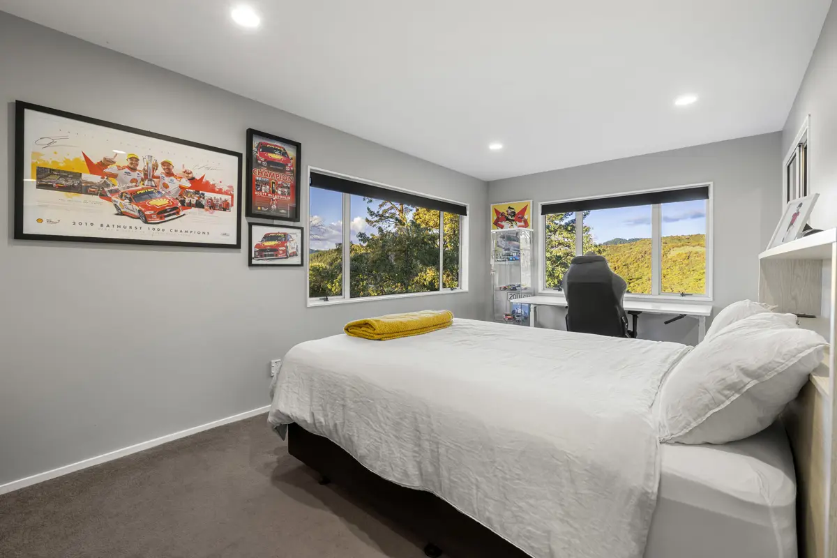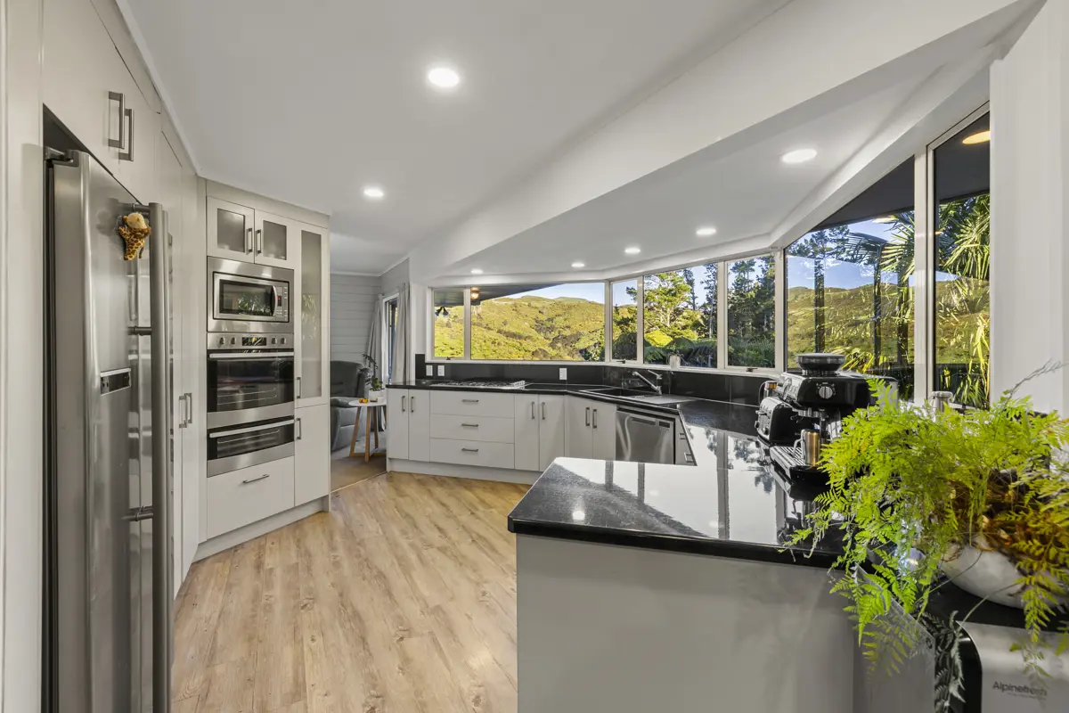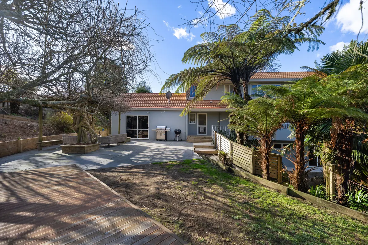 Mornings start here with the aerial circus of stroppy Tui, swooping Kereru and maybe even a wild deer sneaking around over the valley. Everything is here to make your dreams come true. The 5974m2 sloping section is fully fenced for animals, features an electric gate for easy access, low maintenance gardens, a woodlot for years of firewood and to top it all off, a few food gardens and a well-appointed chook hotel. This elevated, spacious home spans 3 levels, offering 5 bedrooms and 3 bathrooms with one bedroom and its own bathroom well separate on the bottom level, complete with its own car space – overall the home is perfect for large or extended families, or for running an Airbnb to generate a wee bit of additional income. Well maintained and nestled among mature trees, the house feels private and serene. Here lies an opportunity to reshape your lifestyle: expand the food gardens and embrace self-sufficiency or simply relax and soak up the peace and quiet — because solitude is something this property has in abundance. Here, life can be shaped to your rhythm. Grow more food and edge closer to self-sufficiency or let the gardens rest and simply enjoy the stillness. Whether you seek connection with nature, room for family, or the quiet solitude of your own sanctuary, this property offers all in abundance.