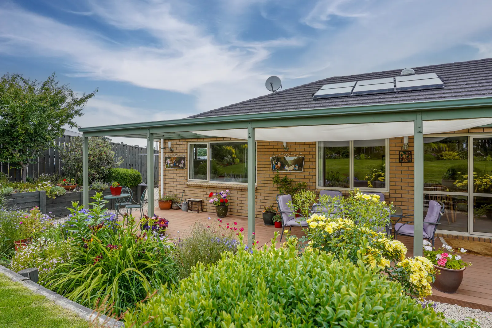 Imagine relaxing in the sun enjoying your gorgeous private garden - it's all here ready for you! Fabulous covered verandah for entertaining, an abundance of delicious edibles including berries, vegetables and herbs plus beautiful shrubs and flowers to surround you in natural greenery. Built in 2012, the home features all day sun, double glazing, a water purifier for health and solar hot water to save you money. The spacious open-plan living/dining boasts a generous sized modern kitchen and with a ducted heat pump system, your home will be cosy all year round. The master bedroom enjoys garden views, and is complete with a walk-in robe and ensuite. Modern bathroom facilities and spacious bedrooms complete this excellent package. Enjoy the advantages of an internal double garage with a separate driveway and quality garage carpeting. The elevated site gives great views over Amberley through to the Port Hills on sunny days. Easy to maintain and handy to all services including Amberley Town Centre, the library and cafes, established homes of this calibre are rare. Contact us today to avoid disappointment.