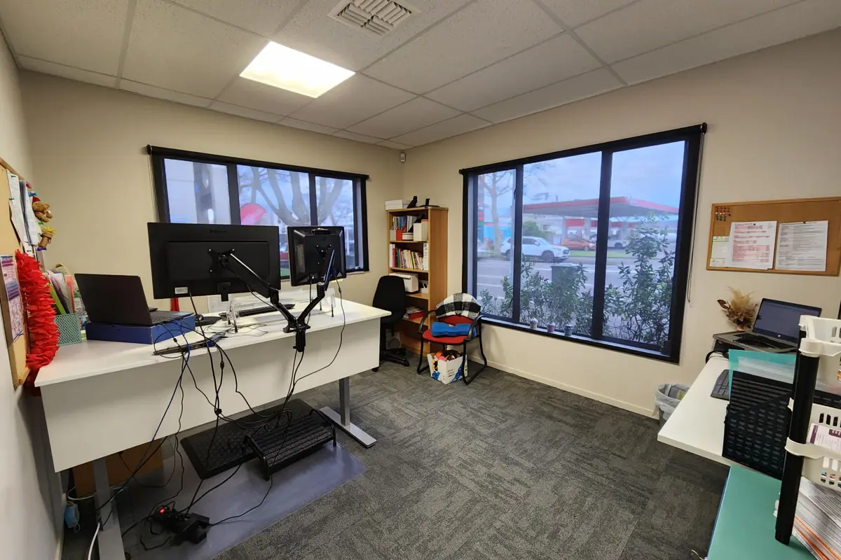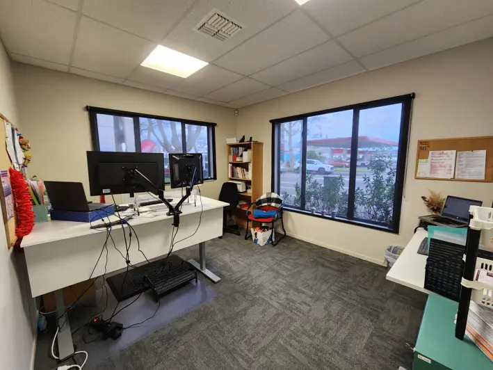 An outer commercial zoned property located near the main central retail area of the city in an area of mixed office, retail, fast food and services including big box retail and vehicle sales. There are two separate office buildings, one at street front constructed in 2008, the second being a 2010 construction within a commercial warehouse building which includes the warehouse area, base facilities and two small offices. Tenants are Access Ability at street front, Birthright and warehouse tenant at rear. Both offices are modern design with fitout appropriate to the business of the tenant. The warehouse is in original 1950s construction style. Total net income $66,059 plus GST. Land area 1,012 sq m (more or less), building area 507 sq m (more or less), 12 car parks.