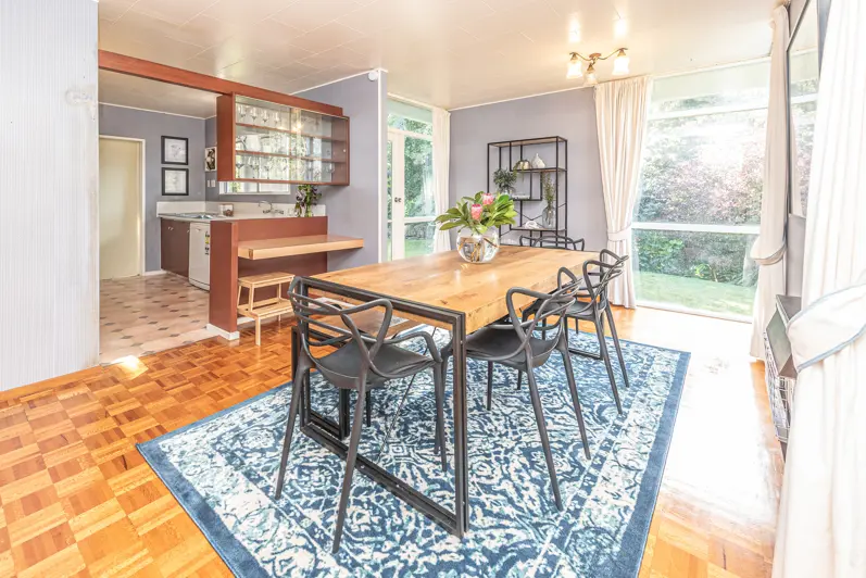 Designed by well know Whanganui award winning architect Don McCallum and set in the Turere Place Modern Houses Precinct, notable for modernist homes. You will feel the arms of this very much loved family home wrap around you as soon as you walk in. The entrance stairs lead up towards the elevated formal lounge that features ceiling to floor windows, allowing you to take in the very peaceful outlook of the surrounding trees. The integrity of this home has been maintained with many of the fabulous original features remaining including the parquet flooring in the kitchen and dining area, the wood panelling in the entrance way that cleverly hides the internal entrance to the triple car garage and the built in cabinetry throughout. The north facing kitchen is perfectly positioned to make the most of the tranquil outlook and flows to the open plan dining area. A door from there and two of the bedrooms leads out to a sheltered patio, perfect for barbeques, fun in the sun or just relaxing and watching the Tui, Kereru and Piwakawaka. The three-car garage offers additional space for the "tinkerer" of the family and there is ample additional off-street parking. If you are wanting to live in a private secluded piece of paradise in a very special home and close to town, then pick up the phone and call us today.