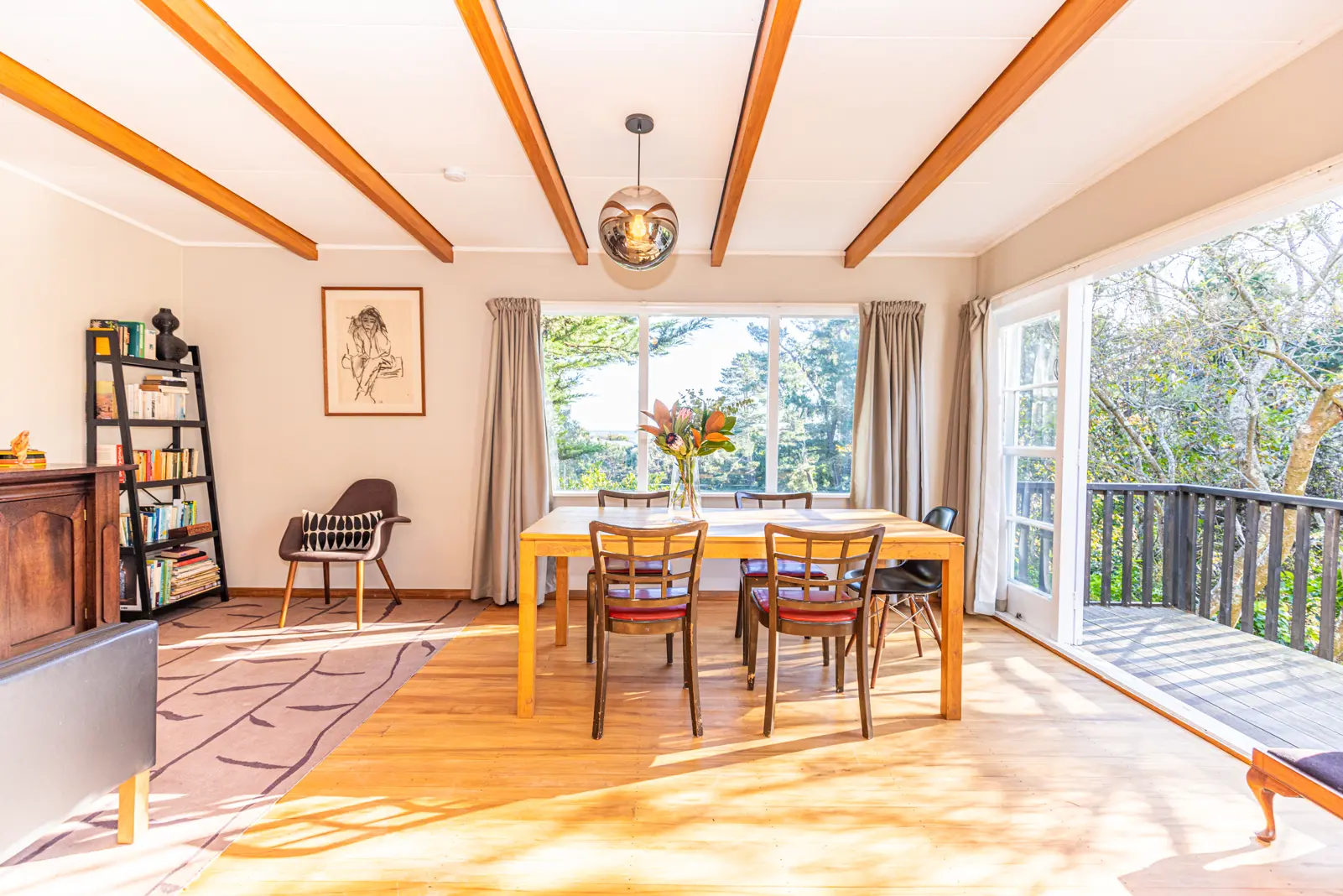 You'll want to stay home all day with this lovely light home, sitting proudly above its 2,360 m2 (approx) section of maintenance free plantings. With views over the trees and out to the ocean from the open plan living, dining, kitchen and the large private deck, you'll be proud to entertain or just enjoy it for yourselves. Two sets of double doors open onto the deck from the living area and the beautiful modern kitchen with black subway tile splashback that accentuates the beautifully polished floors. Robin Hood appliances (range hood, electric stove/oven, dishwasher and fridge) are all staying with the house, if desired. The HRV (serviced May 2023) and wood burner keep you toasty warm and healthy in the winter. Down the hallway you will find three good sized bedrooms with plush carpet and built-in wardrobes. The master has oversized windows to take in the view. There is a large wet floor shower in the bathroom, traditional pedestal vanity and a separate toilet next door, as well as a full sized laundry. Situated in a quiet cul-de-sac on the sought after Durie Hill, 26 Plunket Street has the advantage of being close to the Whanganui City Centre; inside the zone for Durie Hill Primary school and within walking distance to the local shops. This gorgeous character home, which requires very little upkeep, will appeal to a wide range of buyers, from busy professionals, to small families, downsizers and investors. For sale $559,000. First in, first served! Call today for a private viewing.